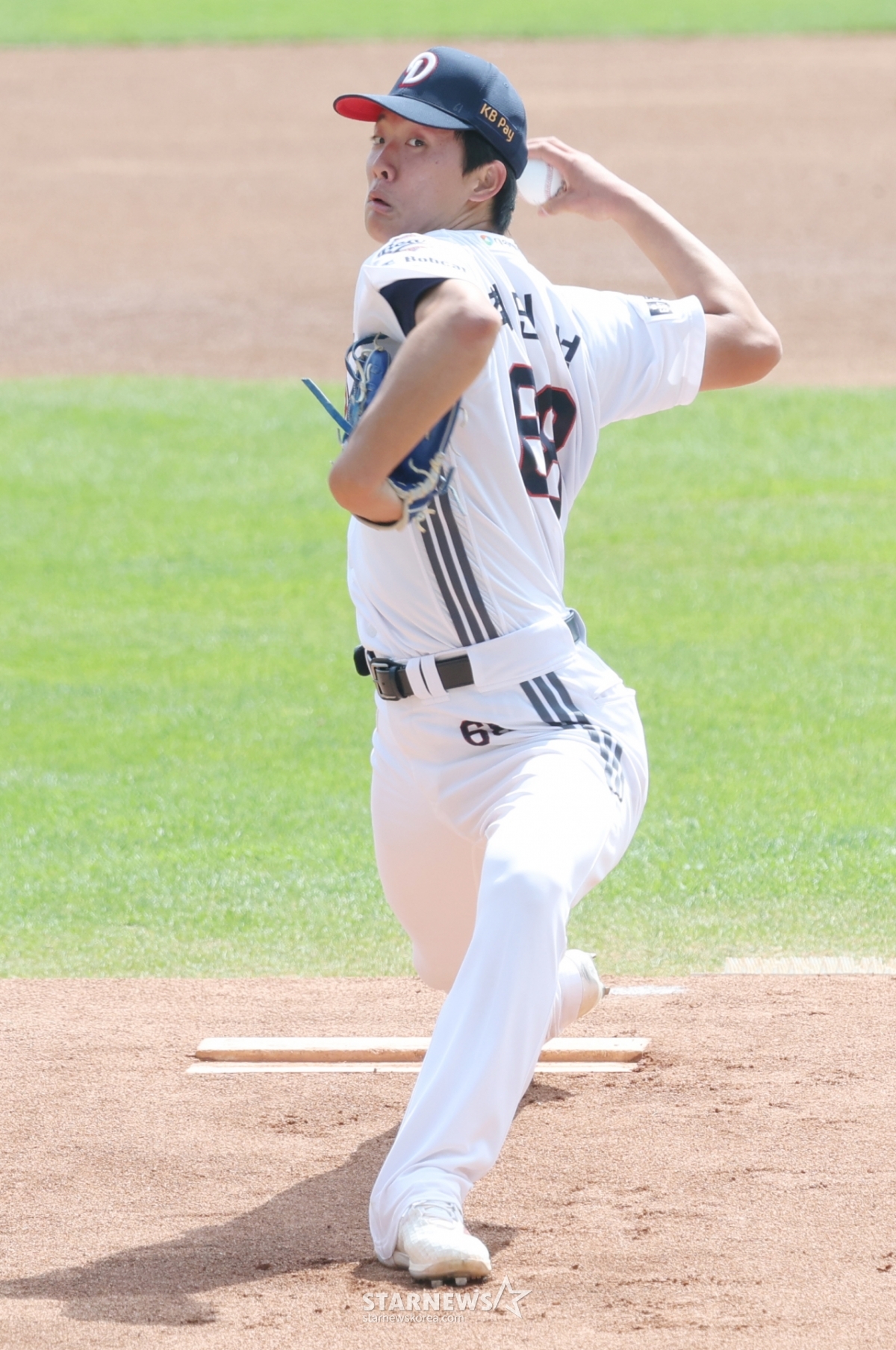 Choi Min Seok người bắt đầu Doosan đang ném bóng ngược lại.