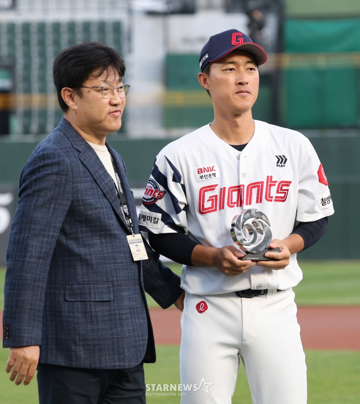 Lotte Noh Jin Hyuk đang giành giải thưởng đạt được 1000 trận công tác.