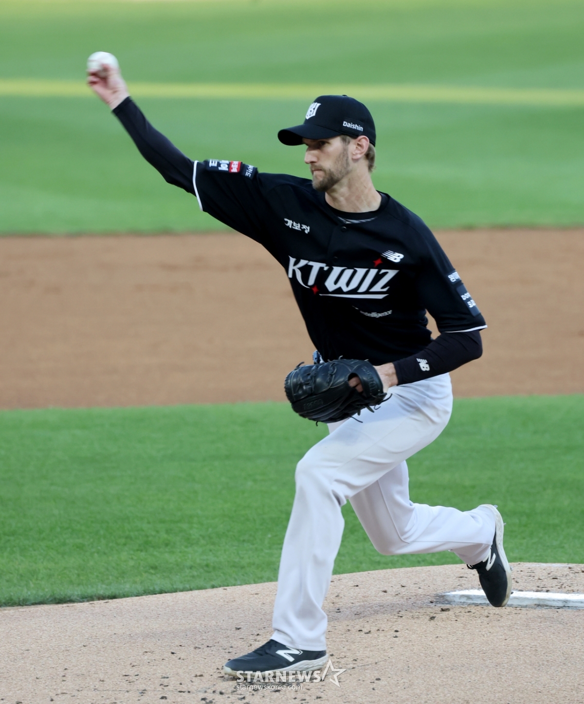 Cầu thủ ném bóng thuận tay phải Boschley của KT đã ra sân trong trận đấu giữa SSGlanders và KT Wiz giải đấu 2026 KBO được tổ chức tại Landersfield vào ngày 24. 2026.04.24.