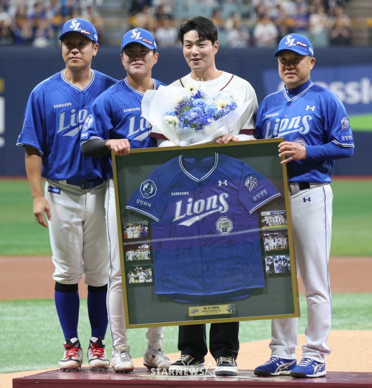 Lễ giải nghệ của Park Byung Ho được tổ chức trước trận đấu giữa Kirum Heroes và Samsung Lions tại Gocheok Sky Dome, Seoul vào ngày 26.