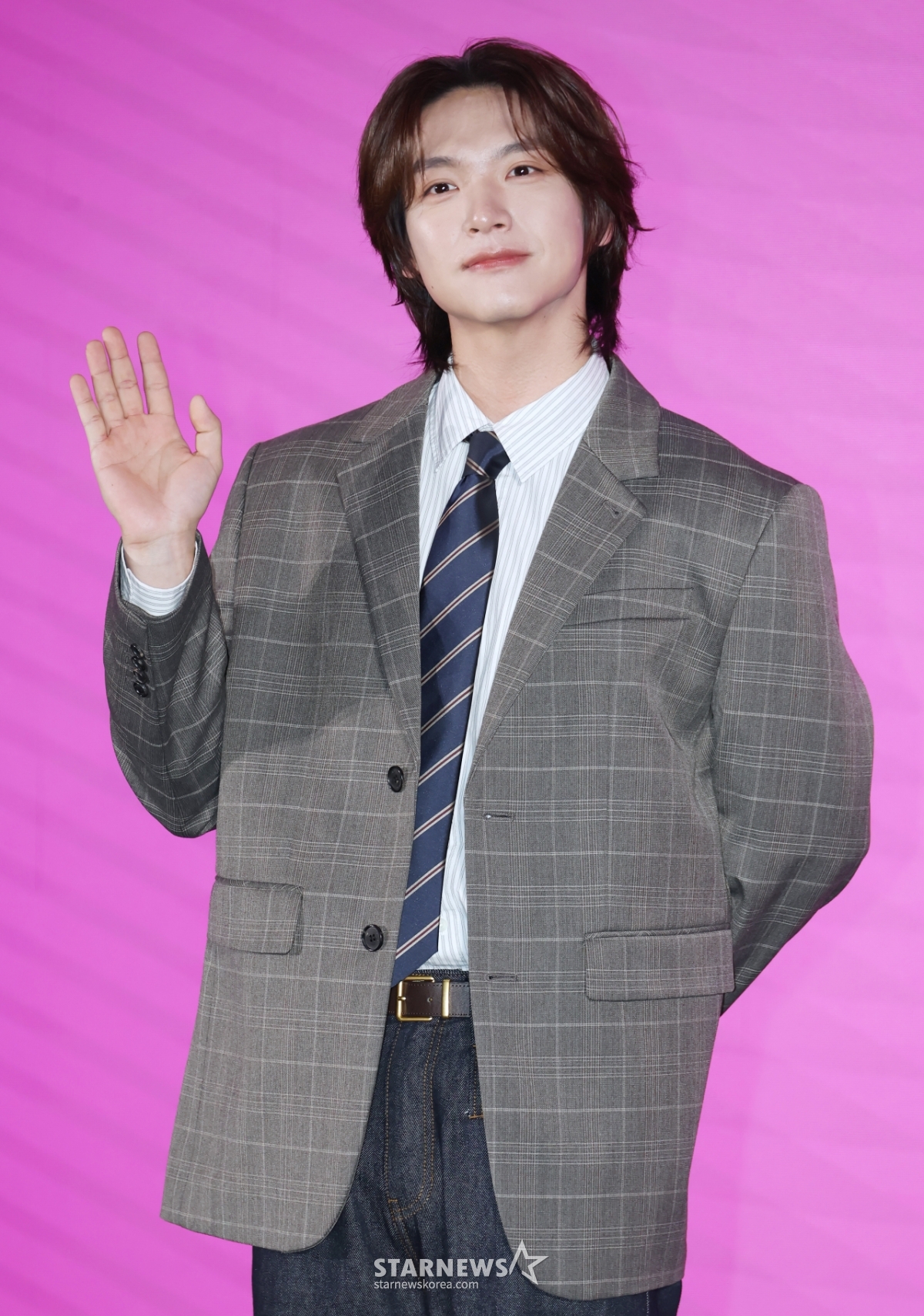 Sáng 14/5, nam diễn viên Kim Jae Hyun đang tạo dáng tại buổi họp báo ra mắt phim điện ảnh Romance Is Age of Romance được tổ chức tại The Saint, Guro-gu, Seoul. /2026.04.14