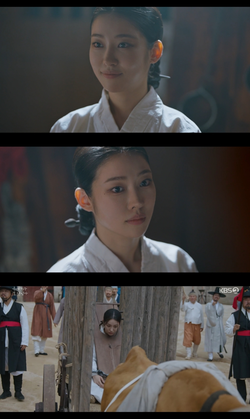 照片中还描绘了坐在涵居中走向流放地的金锈。 路过的百姓们向金禄的头部扔石头,辱骂他,这时看着代替他迎接石头的姜允福,金禄安静地道歉说"我会甘愿受罪的",让人倍感惋惜。