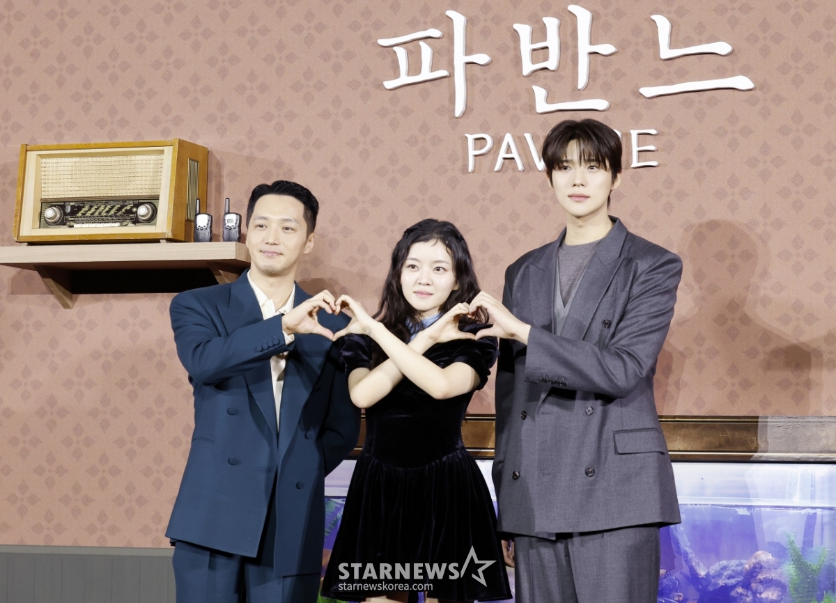 *此内容由AI翻译生成。演员卞耀汉、高雅星、文尚敏12日出席在首尔江南区Megabox Coex举行的电影《帕凡纳》制作报告会,并摆出造型,供记者们拍照。 /2026.02.12© STARNEWS. 未经许可禁止转载或再分发*此内容由AI翻译生成。
