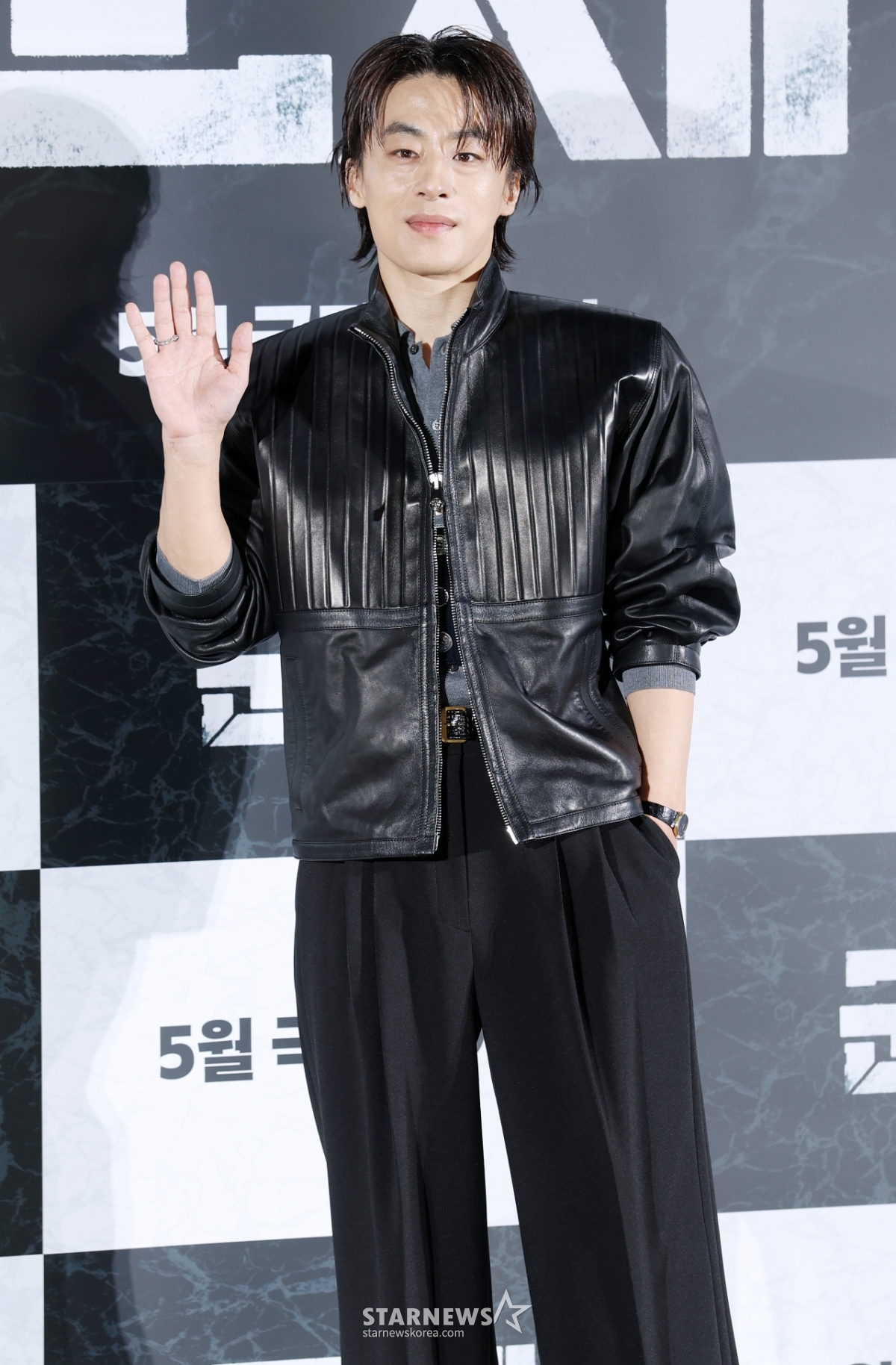 6日,演员具教焕出席在首尔龙山区CGV Ipark购物中心举行的电影《群体(导演延相昊)》制作报告会,并摆出造型,供记者们拍照。 /2026.04.06