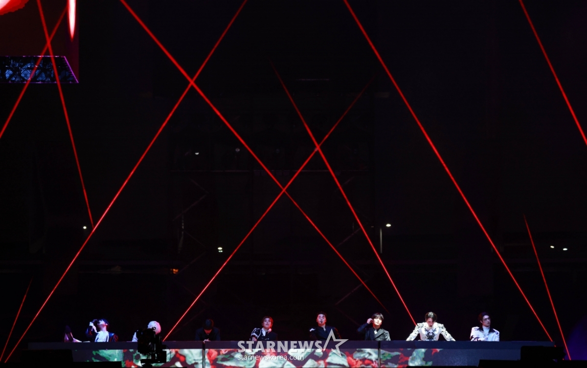 ATEEZ组合洪中、成华、允浩、吕相山、珉起、佑荣、钟浩6日在高雄国家体育场举行的明星新闻主办的"10周年亚洲艺术家大奖2025(10th Anniversary Asia Artist Awards 2025,《10周年AAA 2025)"上宣告了精彩的舞台。
