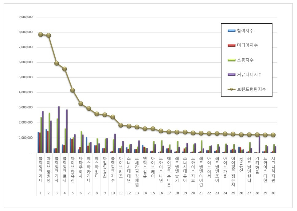 品牌声誉指数是找出消费者的网络习惯对品牌消费产生巨大影响,通过分析品牌大数据而制定的指标。 通过分析女子组合个人品牌评价,可以测定对女子组合个人品牌的肯定评价、媒体关注度、消费者的关心和沟通量。 女子组合个人品牌评价分析中还包括测定品牌影响力的品牌价值评价分析。