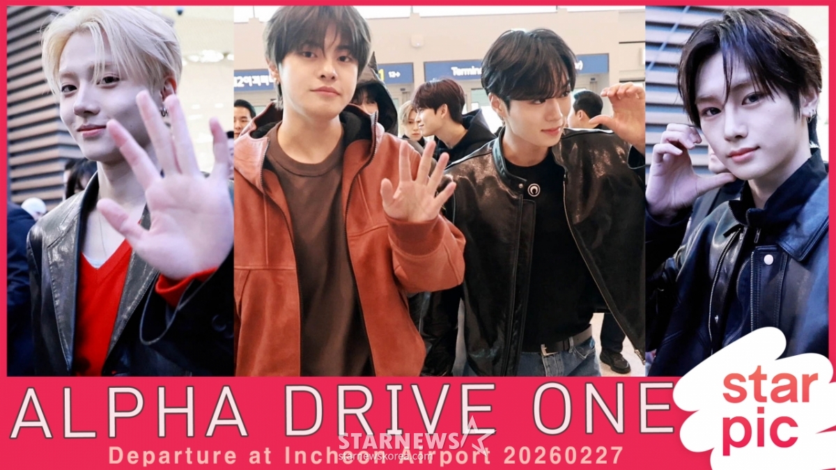 组合ALPHA DRIVE ONE的俊书、Arno、Leo、建宇、尚元、申龙、安信、尚贤为了海外日程,于27日上午通过仁川国际机场出国。 2026.02.27