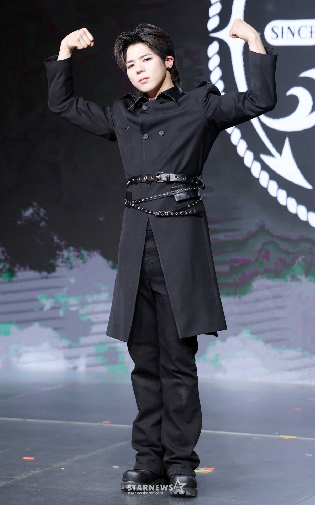 组合Big Ocean的灿妍3日在首尔麻浦区Shocking K-POP中心举行的迷你3辑《THE GREATEST BATTLE》发行纪念表演秀上摆出造型,供记者们拍照。 /2026.03.03