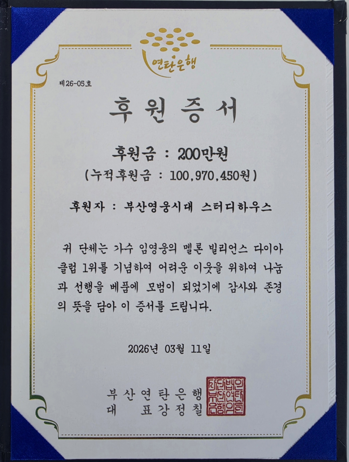 此次活动是为纪念林英雄获得甜瓜"碧莲钻石俱乐部"第一名和Mr.Trot"金"评选6周年而举办的,并赠送了200万韩元的特别赞助金。