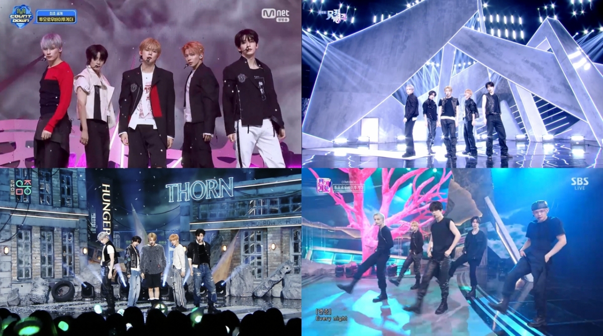 另外,TOMORROW X TOGETHER在TV、YouTube等多种平台上亮相,正在持续活跃的活动。 最近在YouTube内容《PIXID》、《UV录音室》、《偶像人间剧场》等节目中展现了综艺感,受到了很多关注。 21日将出演MBC FM4U《金伊娜的星星闪耀的夜晚》、24日油管频道《割明秀》、26日KBS 2TV《社长的耳朵是驴耳朵》等节目。