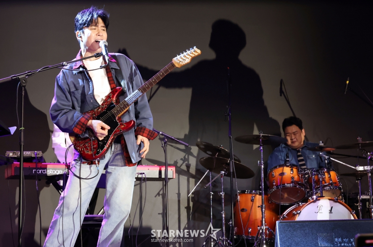12日下午,在首尔钟路区SA Hall举行的首张数码单曲《你知道》发行纪念表演秀上,Umuta乐队正在展示精彩的舞台。