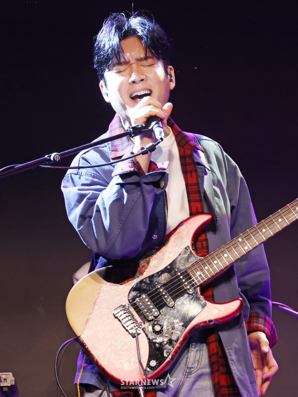 12日下午,在首尔钟路区SA Hall举行的第一张数码单曲《你知道》发行纪念表演秀上,Umuda乐队全仁赫正在展示精彩的舞台。