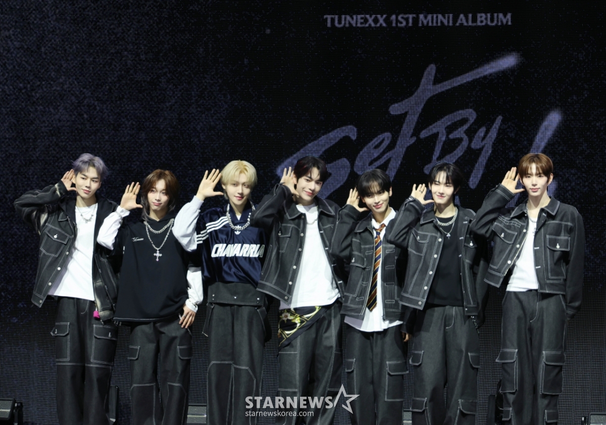 *此内容由AI翻译生成。新人男子组合"TUNEXX"3日下午在首尔广津区YES24 Live Hall举行的出道专辑兼首张迷你专辑《SET BY US ONLY》发行纪念表演秀上摆出造型,供记者们拍照。这张专辑收录了主打歌《我活着的证据》和《100%》、《Obsessed》、《Twenty Something》等4首歌曲。 /2026.03.03© STARNEWS. 未经许可禁止转载或再分发*此内容由AI翻译生成。