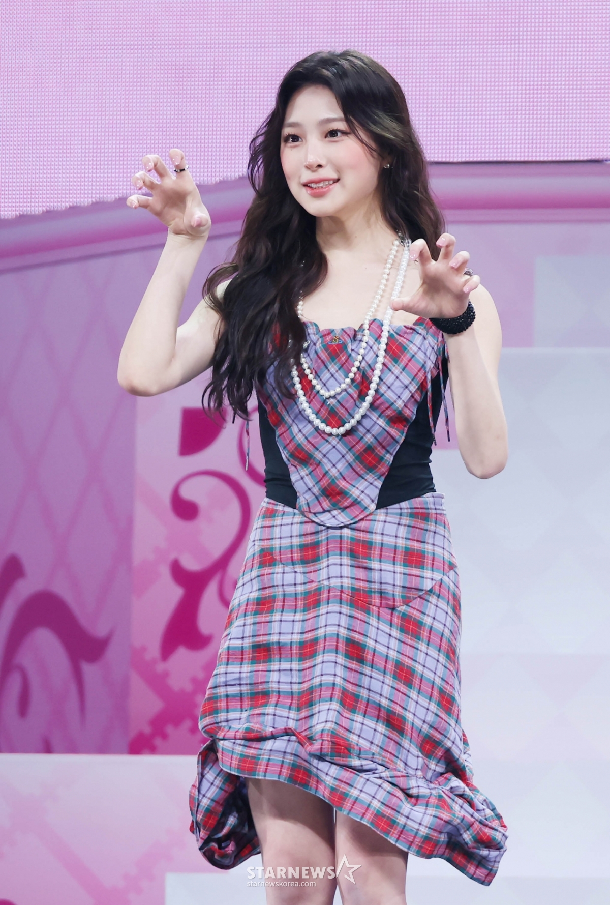 24日,在首尔龙山区蓝色广场举行的迷你1辑《AFTER CRY》发行纪念表演秀上,女子组合Baby DONT cry正在摆出造型,供记者们拍照。 /2026.03.24
