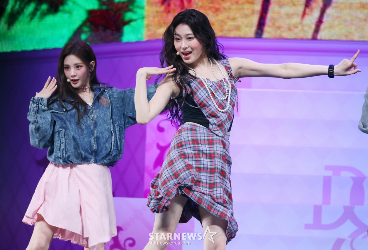 24日,在首尔龙山区蓝色广场举行的迷你1辑《AFTER CRY》发行纪念表演秀上,女子组合Baby DONT cry正在展示主打歌。 /2026.03.24