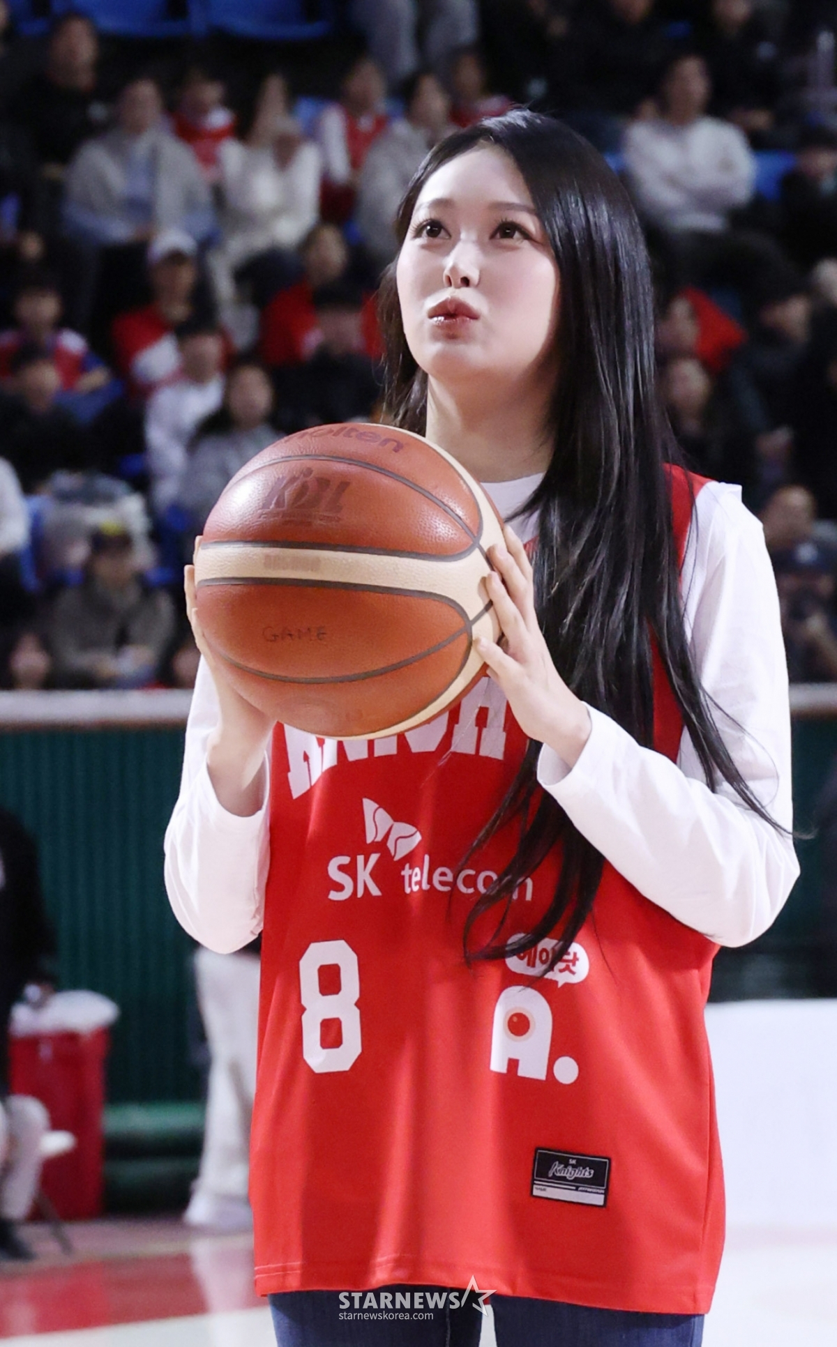 组合SAY MY NAME成员昭夏正在为SK胜利开球。