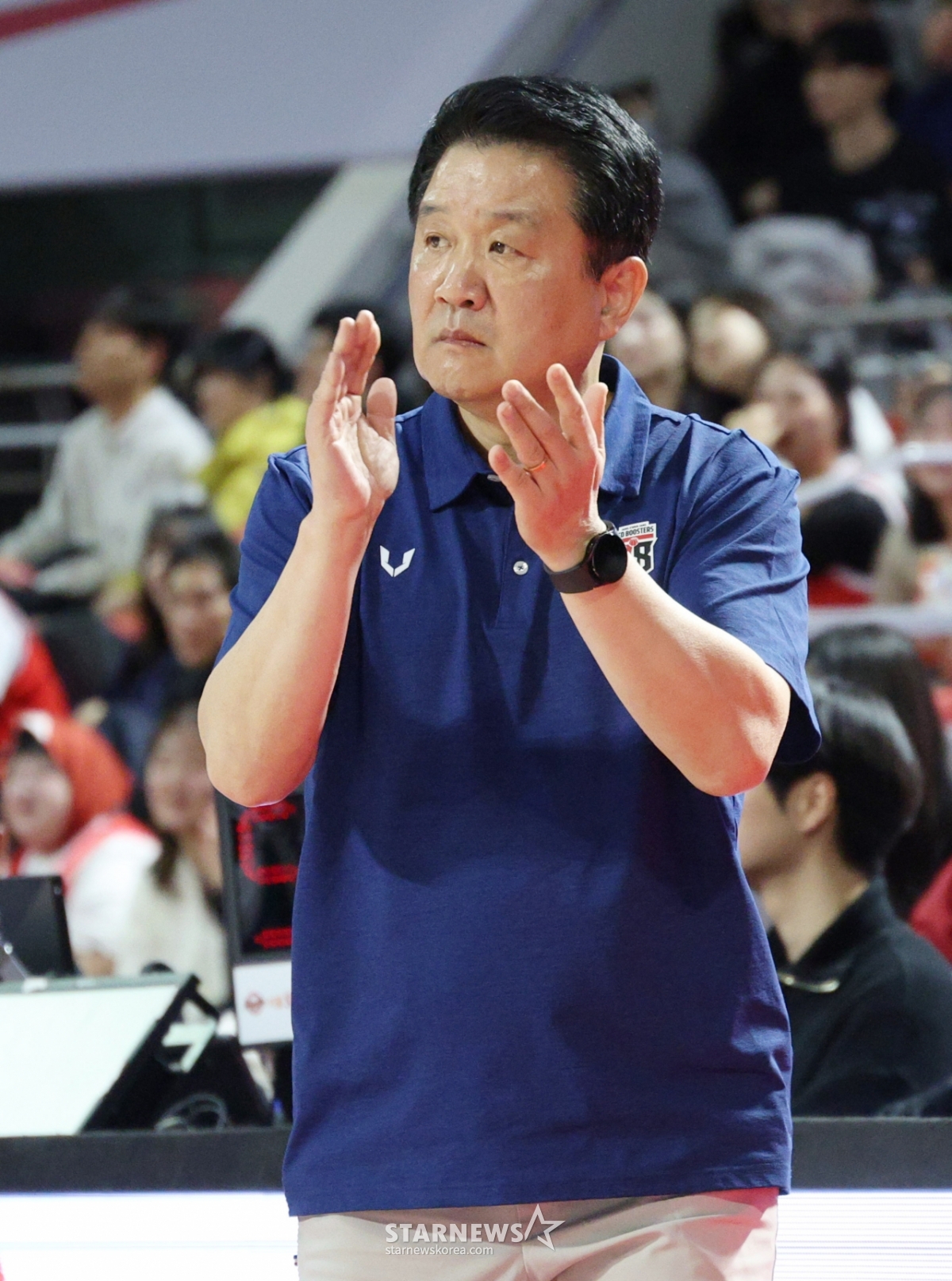 正官庄主教练俞道勋正在为选手们的表现鼓掌。