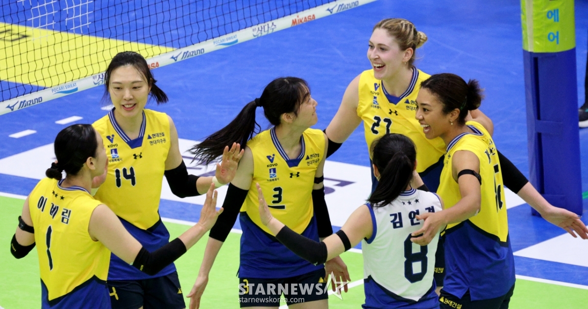 *此内容由AI翻译生成。3日,现代金多仁和选手们在水原体育馆举行的2025-2026真航空V联赛女子组现代建设队和GS加德士队的比赛中得分后正在庆祝。 2026.01.03.3日,现代金多仁和选手们在水原体育馆举行的2025-2026真航空V联赛女子组现代建设队和GS加德士队的比赛中得分后正在庆祝。 2026.01.03.© STARNEWS. 未经许可禁止转载或再分发*此内容由AI翻译生成。