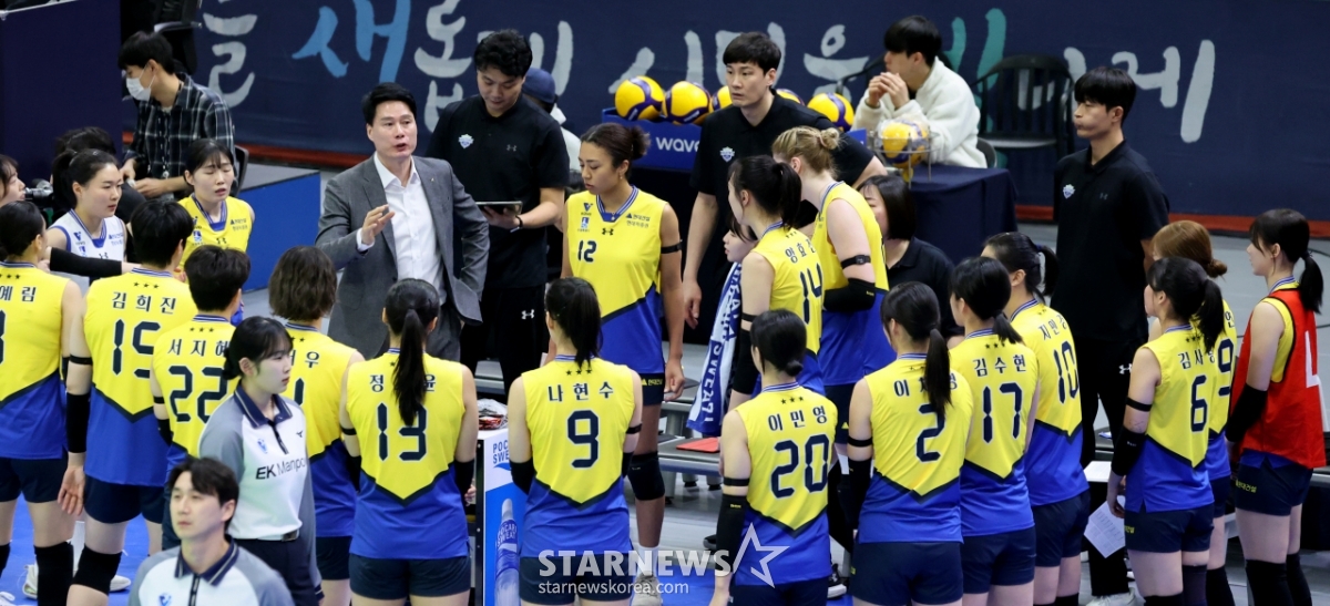 3日,挑战9连胜的现代建设队主教练姜成亨和选手们在水原体育馆举行的2025-2026真航空V联赛女子组现代建设队和GS加德士队的比赛之前,正在下定决心。 2026.01.03.
