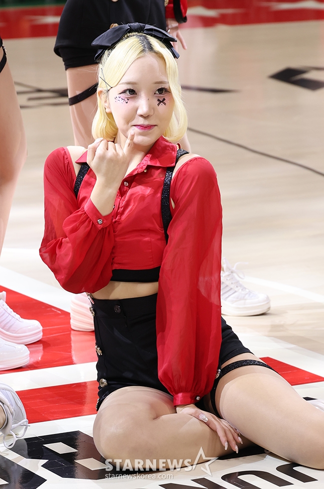 *此内容由AI翻译生成。4日,在京畿道安养正官庄竞技场举行了LG电子职业篮球安养正官庄对釜山KCC的比赛。图为正官庄的啦啦队队长朴成恩(音)正热情助威。© STARNEWS. 未经许可禁止转载或再分发*此内容由AI翻译生成。