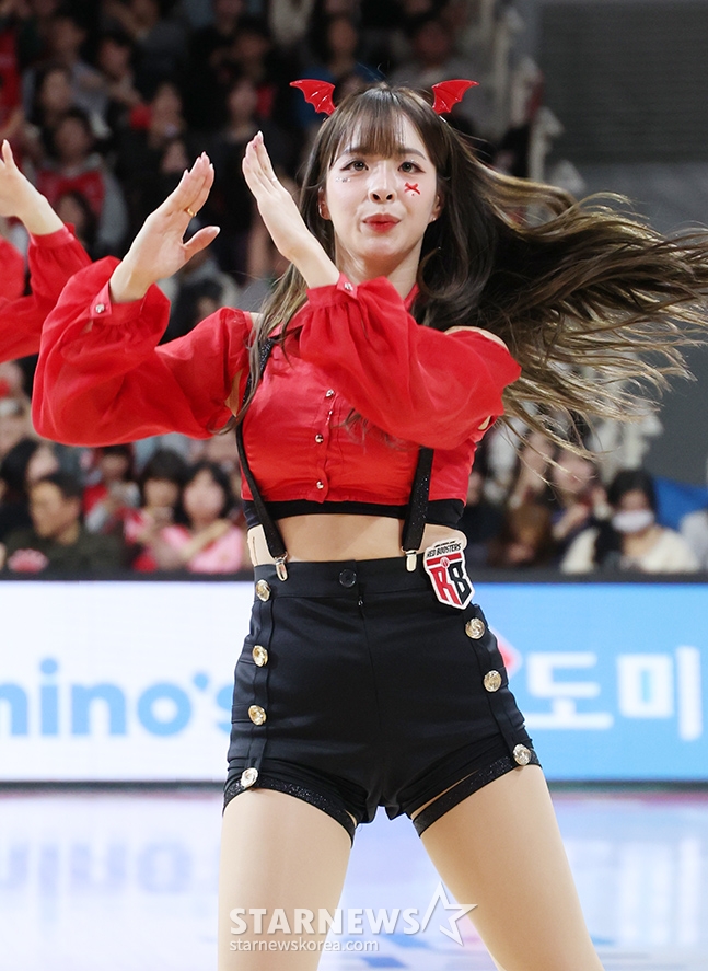 *此内容由AI翻译生成。4日,2025-2026LG电子职业篮球安养正官庄对釜山KCC的比赛在京畿道安养正官庄竞技场举行。图为正官庄的啦啦队队长赵多彬(音)正热情助威。© STARNEWS. 未经许可禁止转载或再分发*此内容由AI翻译生成。