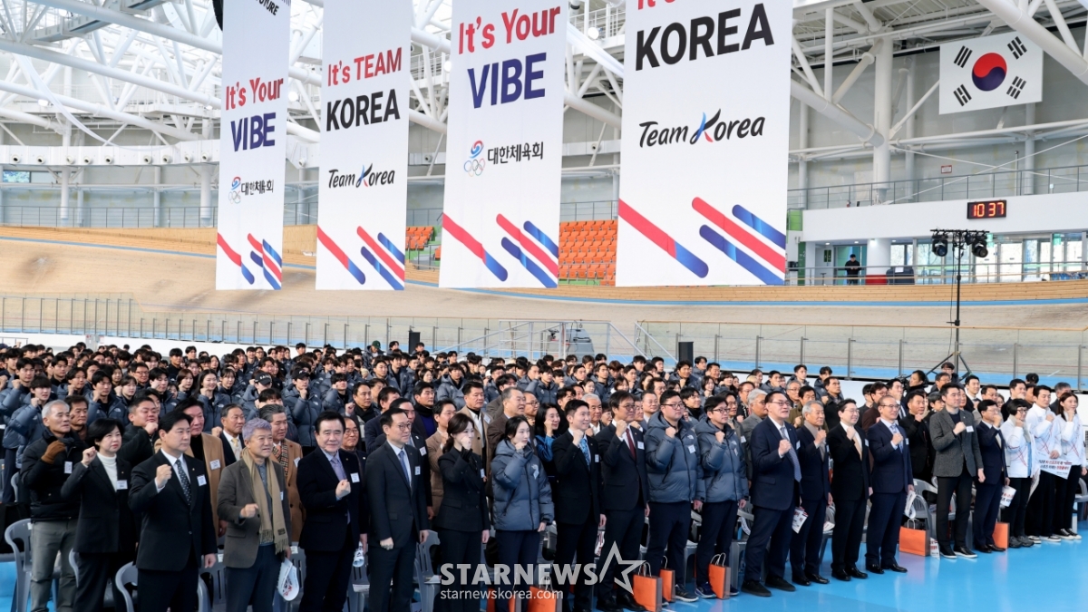 7日,大韩体育会会长刘承승민和文化体育观光部长官崔辉映在镇川国家代表训练场举行的2026国家代表训练开始仪式上,与选手团一起高喊加油。 2026.01.03.