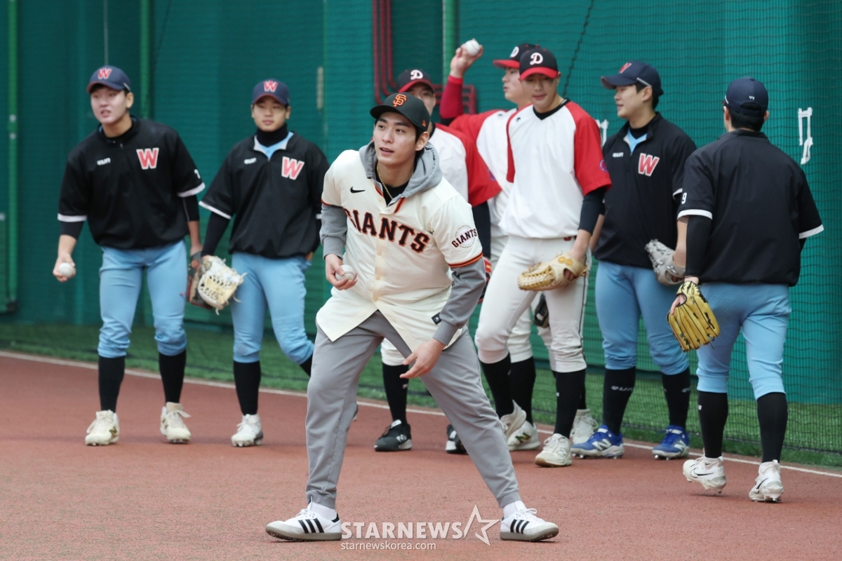 美国职业棒球大联盟(MLB)旧金山巨人队7日在京畿道利川LG冠军公园邀请60多名徽文高中和德寿高中选手举行了棒球诊所。