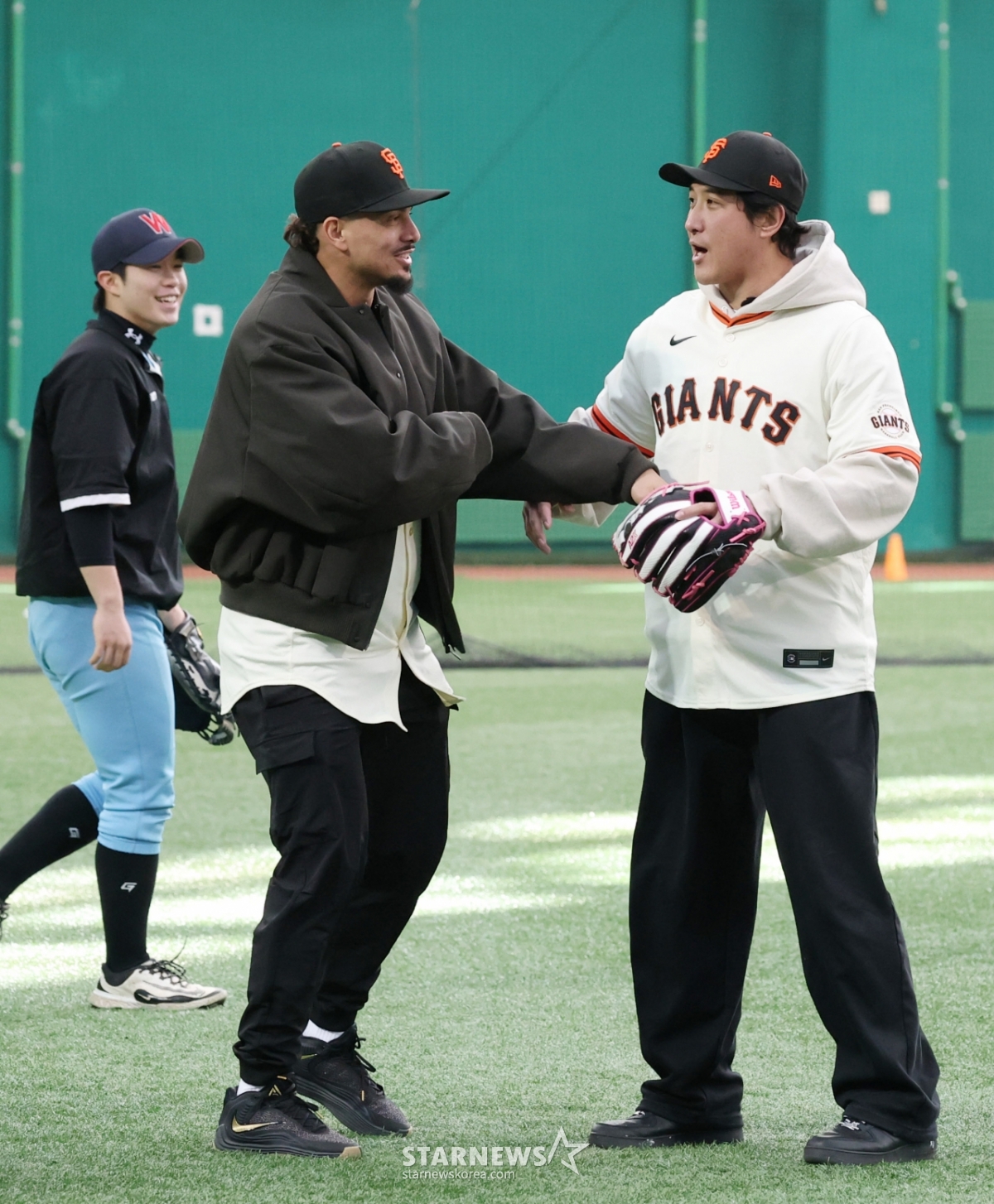 黄载均说:"正厚问我能不能来电话,我欣然答应了。 幼儿和少年孩子们一有机会就会教他们,所以没有大问题","虽然有过一段时间,但是正厚很高兴能去我所在的球队。 另外,在旧金山举行这样的活动,感觉郑厚很了不起。 能邀请我参加这样的活动,心情真的很好。"