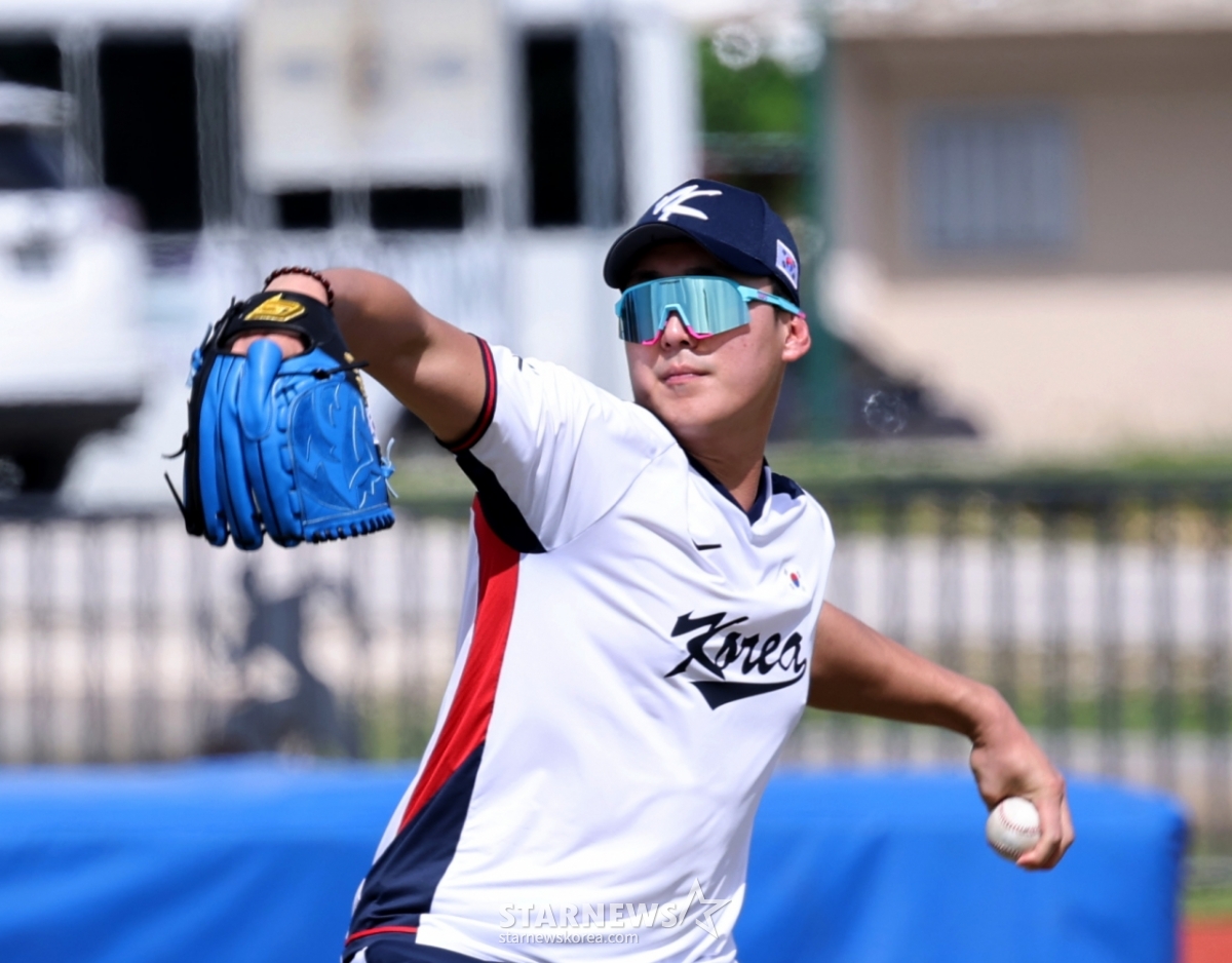 棒球代表队投手孙周永10日在塞班岛Olleye Sports Complex举行的转地训练第一天,正在全力进行投手组训练。 2026.01.10.