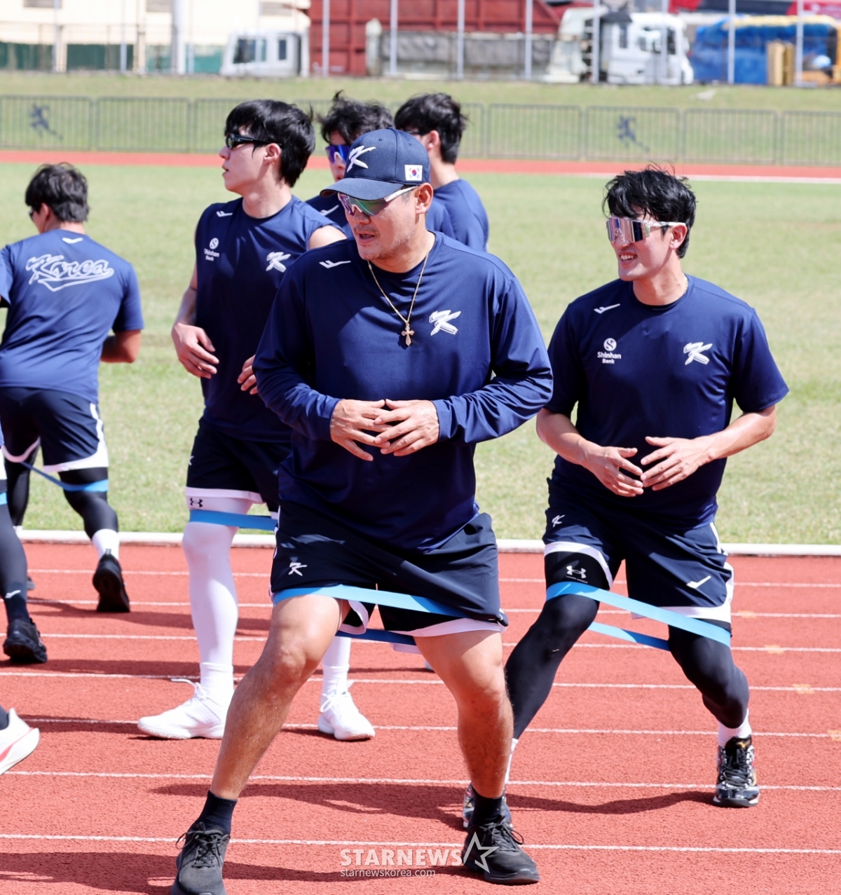 11日,棒球代表队卢景恩在塞班岛Olleye Sports Complex举行的转地训练第二天,正戴着乐队进行下肢锻炼训练。 2026.01.11.