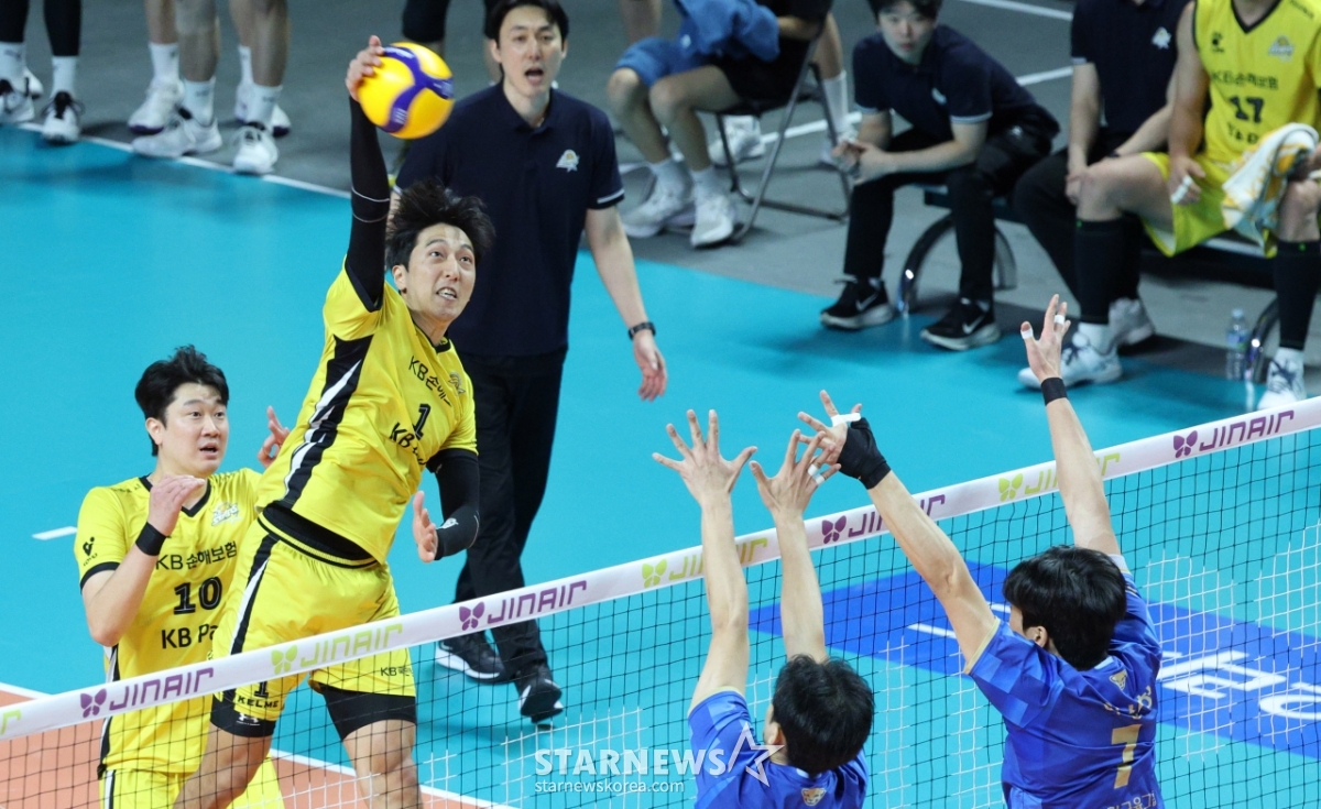 11日,在首尔奖忠体育馆举行了2025-2026 V-联赛男子组友利信用卡对KB损害保险的比赛。