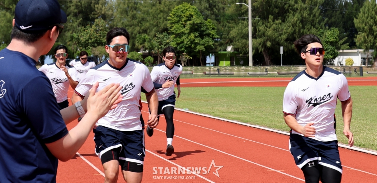 *此内容由AI翻译生成。棒球代表队孙周永和赵炳铉12日在塞班岛Olleye Sports Complex举行的转地训练投手组训练中,正在全力奔跑。 2026.01.12.© STARNEWS. 未经许可禁止转载或再分发*此内容由AI翻译生成。