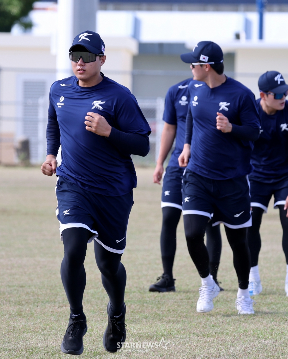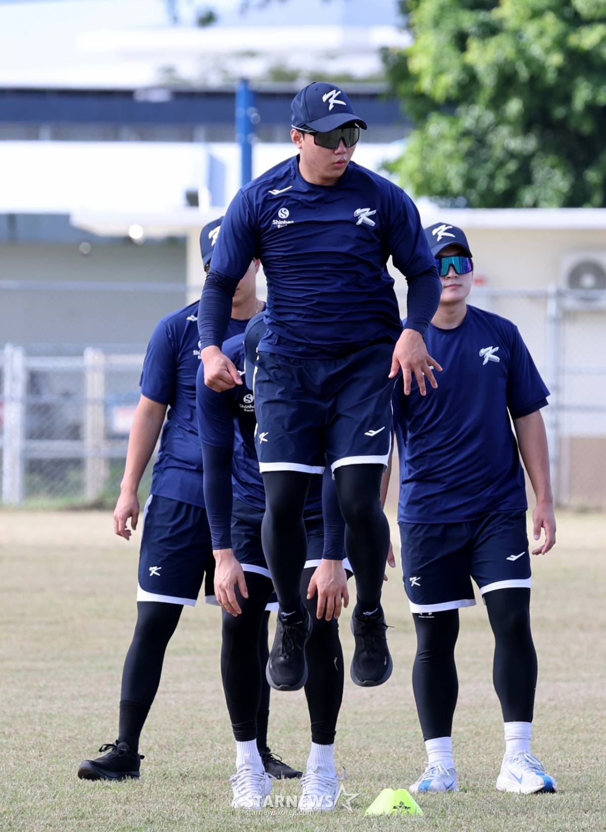 14日,在塞班岛Olleye Sports Complex举行的第5天训练中,棒球代表队裴灿胜(音)正在做立定跳高热身。 2026.01.14
