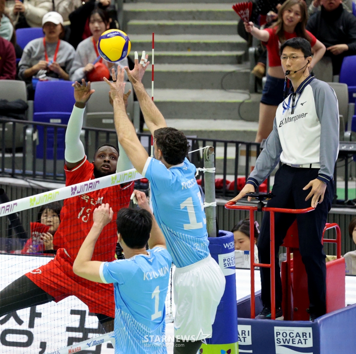 20日,在水原体育馆举行的2025-2026真航空V联赛韩国电力队和大韩航空队的比赛中,韩电Venon队因时机不对,正在试图将其推进。 202601.20.