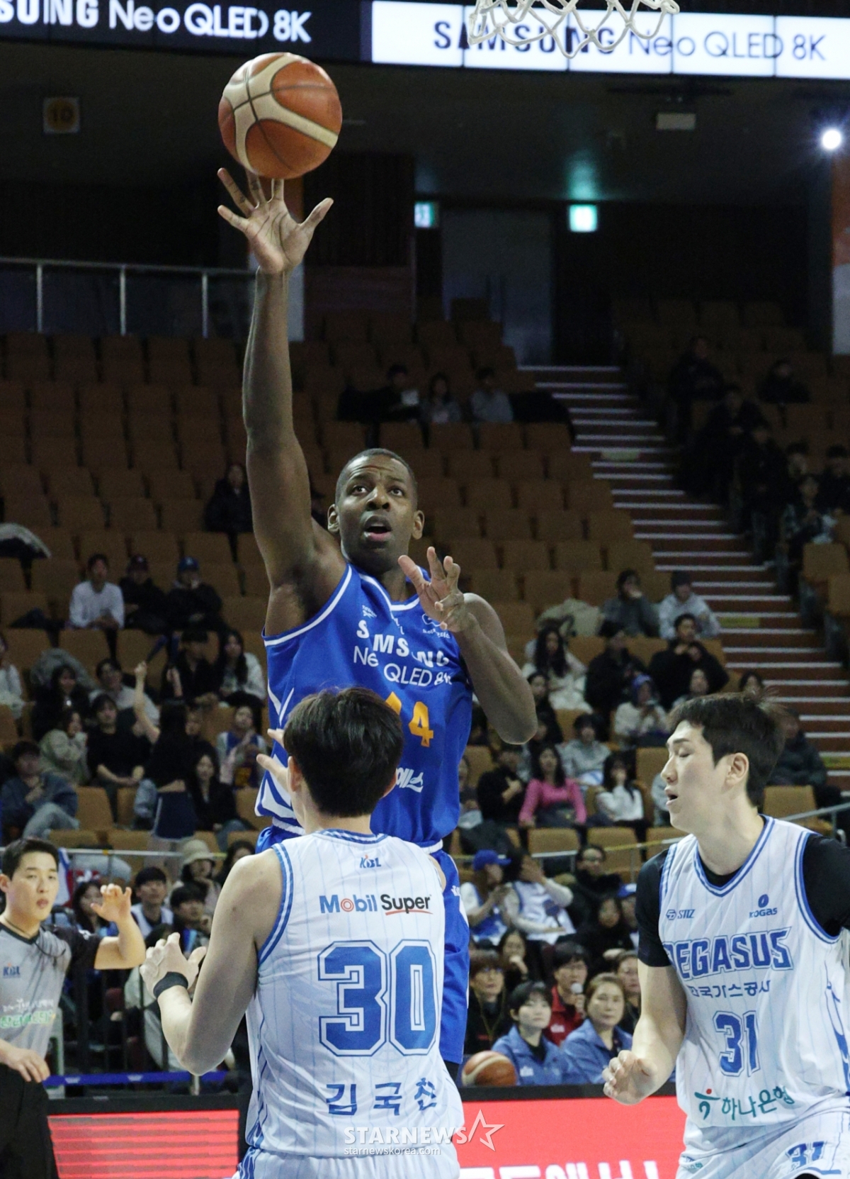 *此内容由AI翻译生成。22日,2025-2026 KBL职业篮球联赛首尔三星队对大邱韩国天然气公社的比赛在首尔蚕室室内体育馆举行。图为三星队的尼科尔森正在试图向韩国天然气公社队的金国灿(音)防守端投篮。© STARNEWS. 未经许可禁止转载或再分发*此内容由AI翻译生成。