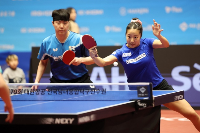 但是去年在世界杯网球赛(WTT)总决赛上夺冠的林钟勋-申有彬组合的气势也不容小觑。 通过此次大赛首次在国内舞台上亮相的林钟勋-申有彬组合凭借林钟勋犀利的反手任意球和申有彬的防守,在比赛中期掌握了主导权。 从第三场比赛开始,女选手的决定力反而左右了比赛。 林钟勋和赵承珉以稳定的防守为基础,展开了紧张的对攻。 最终胜利者成为了逐渐成功实现更多半球的林钟勋-申有彬组合。