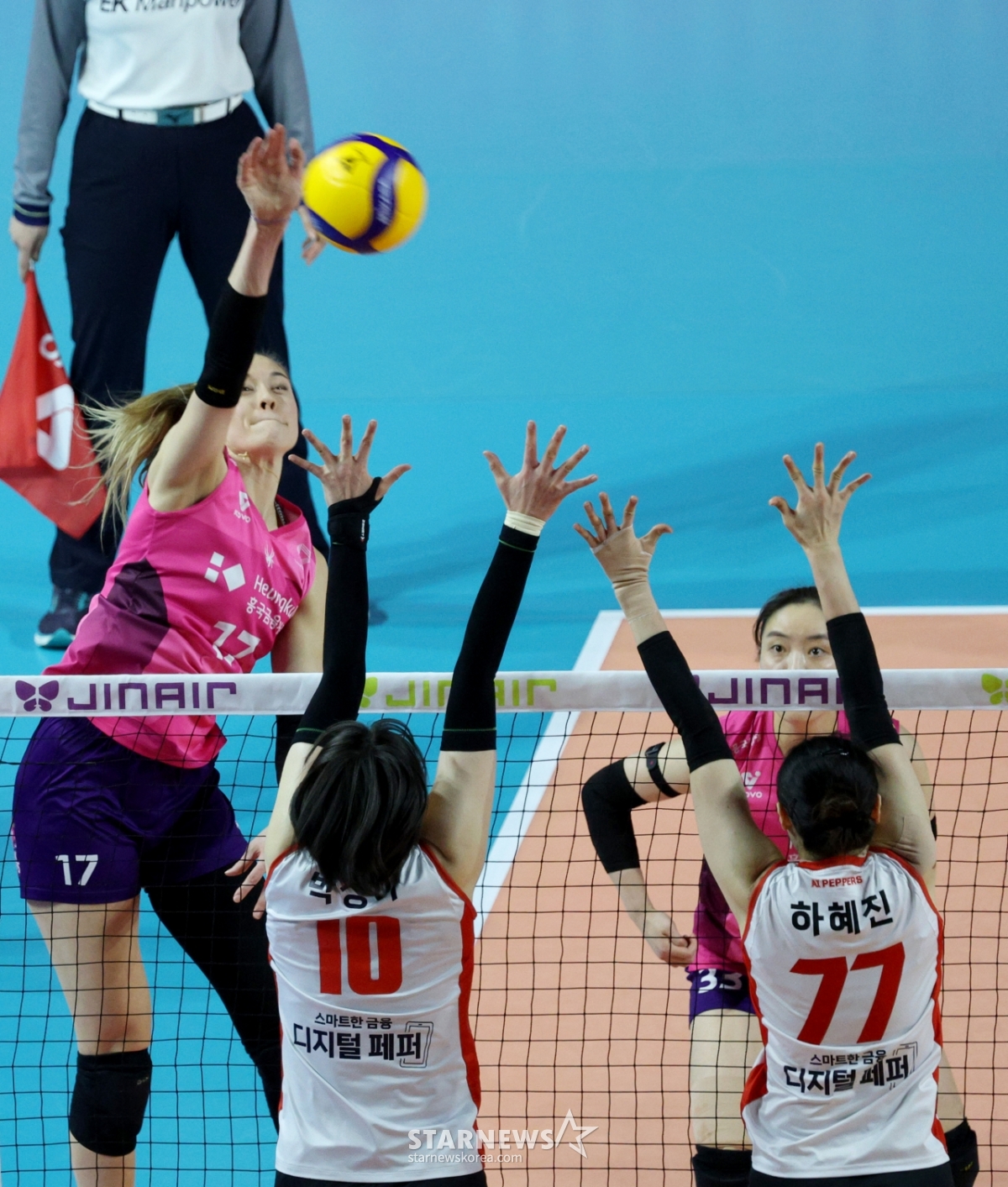 *此内容由AI翻译生成。兴国丽贝卡1日在三山世界体育馆举行的2025-2026阵中,在V联赛兴国生命和Pepper储蓄银行比赛中,正在高空猛击。 2026.02.01.© STARNEWS. 未经许可禁止转载或再分发*此内容由AI翻译生成。