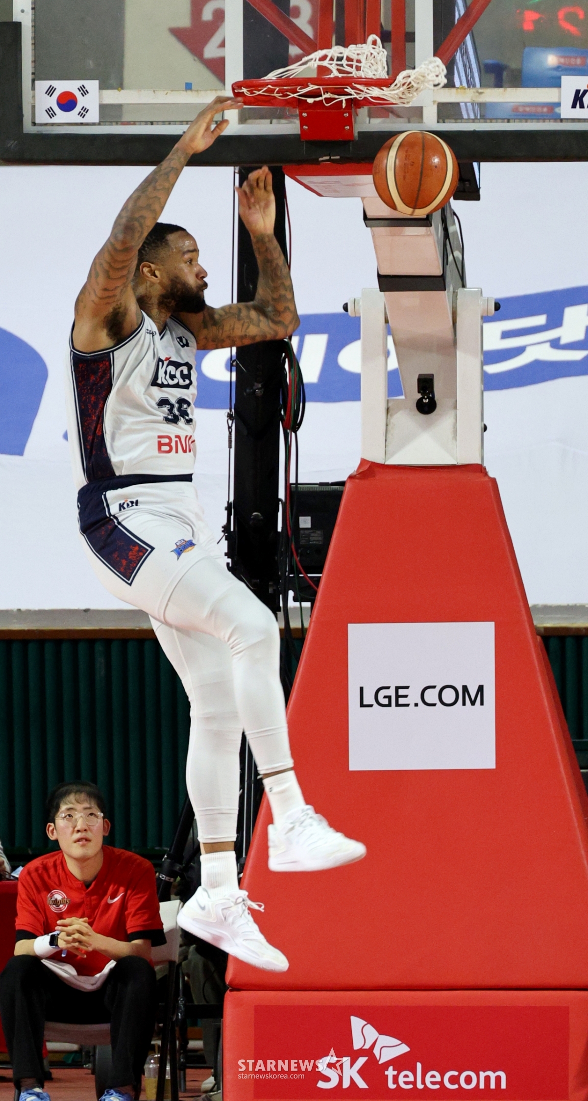 *此内容由AI翻译生成。2日,在实学生体育馆举行的2025-2026LG电子职业篮球首尔SK队与釜山KCC队的比赛中,KCC队的肖恩龙正在扣篮。 2026.02.02.© STARNEWS. 未经许可禁止转载或再分发*此内容由AI翻译生成。