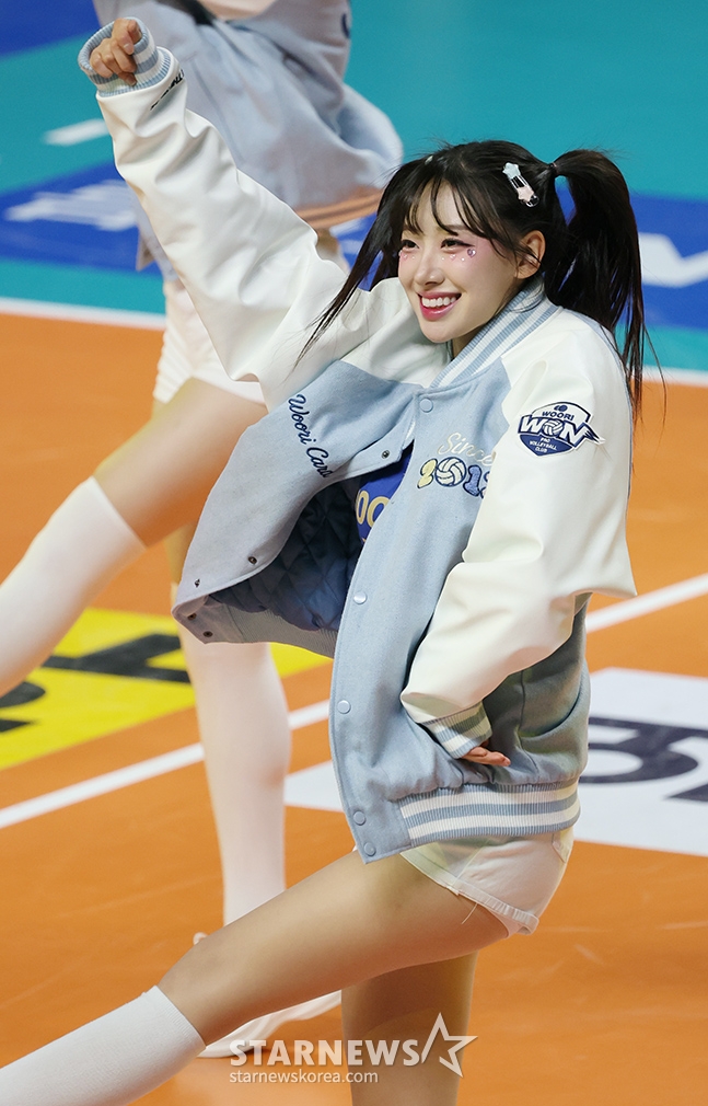 *此内容由AI翻译生成。2日,在首尔奖忠体育馆举行了2025-2026 V-联赛男子组友利信用卡对韩国电力队的比赛。友利信用卡的啦啦队队员正在热情助威。© STARNEWS. 未经许可禁止转载或再分发*此内容由AI翻译生成。