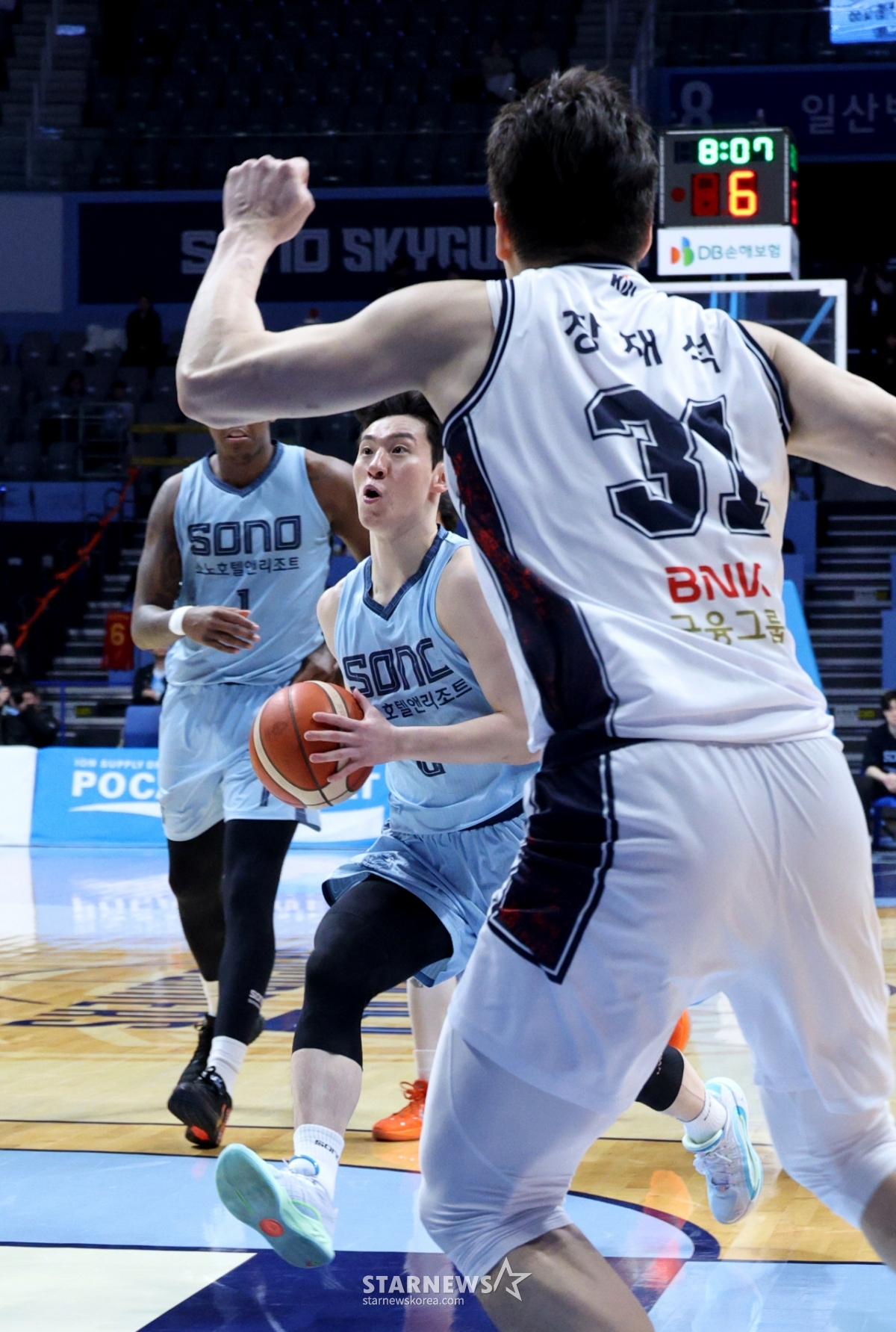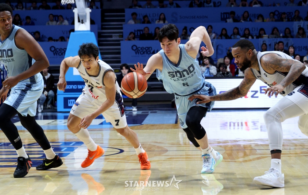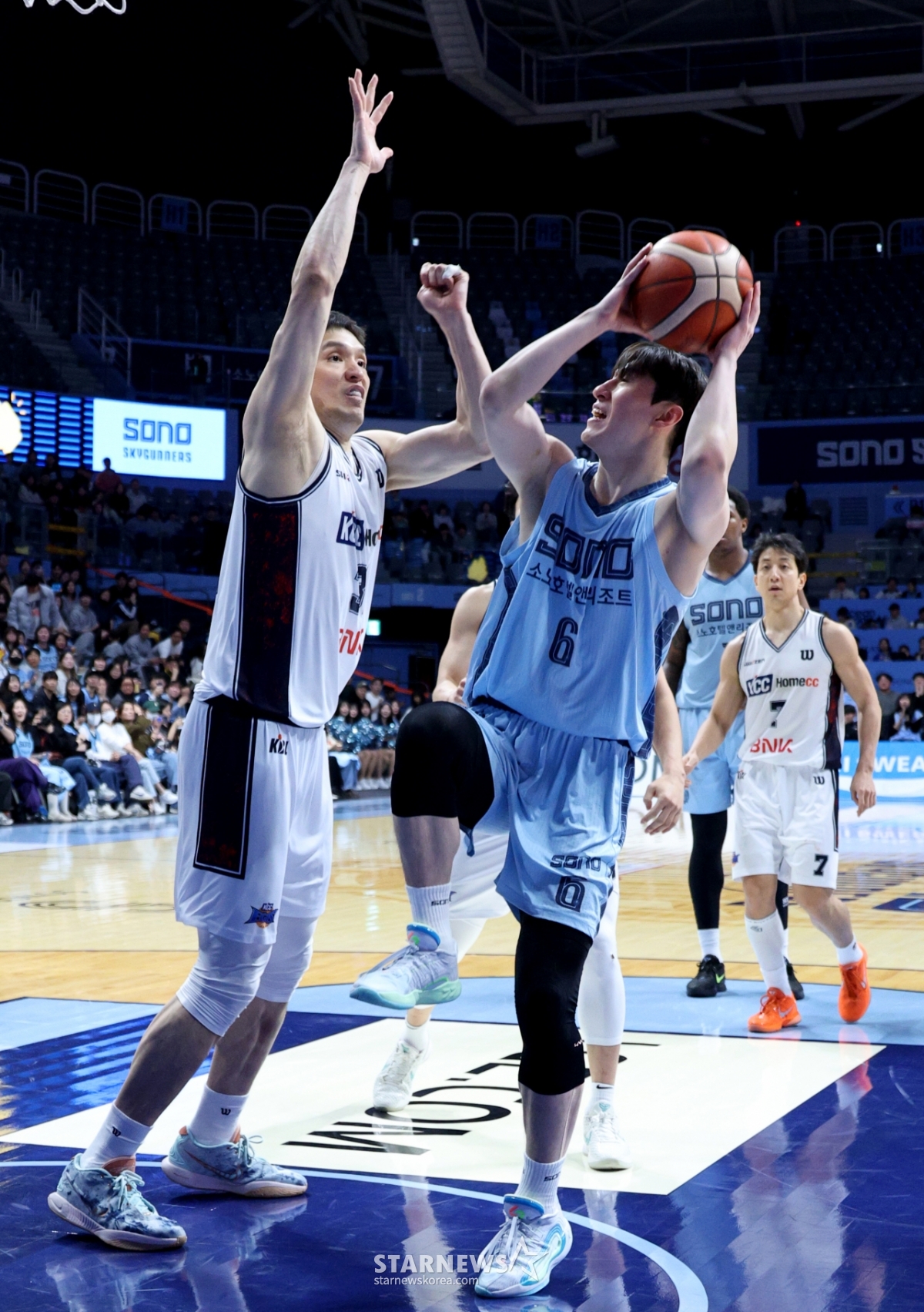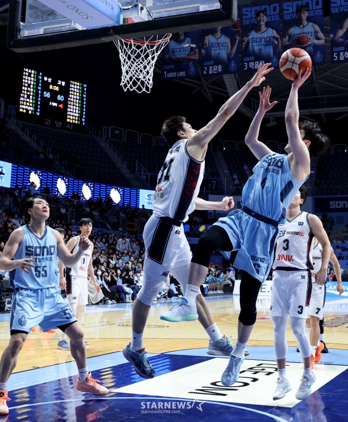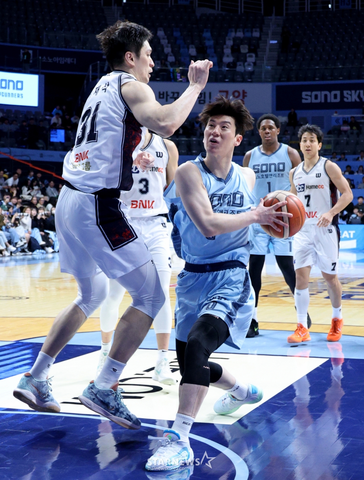*此内容由AI翻译生成。4日,索诺李贞贤在高阳索诺竞技场举行的2025-2026LG电子职业篮球高阳索诺和釜山KCC队的比赛中,甩开许勋后,在张在锡的标记下试图射门。 2026.02.04.© STARNEWS. 未经许可禁止转载或再分发*此内容由AI翻译生成。