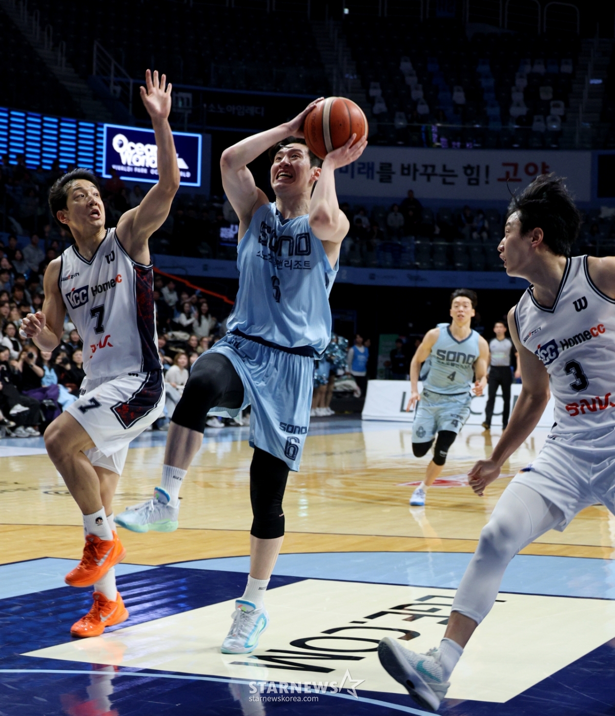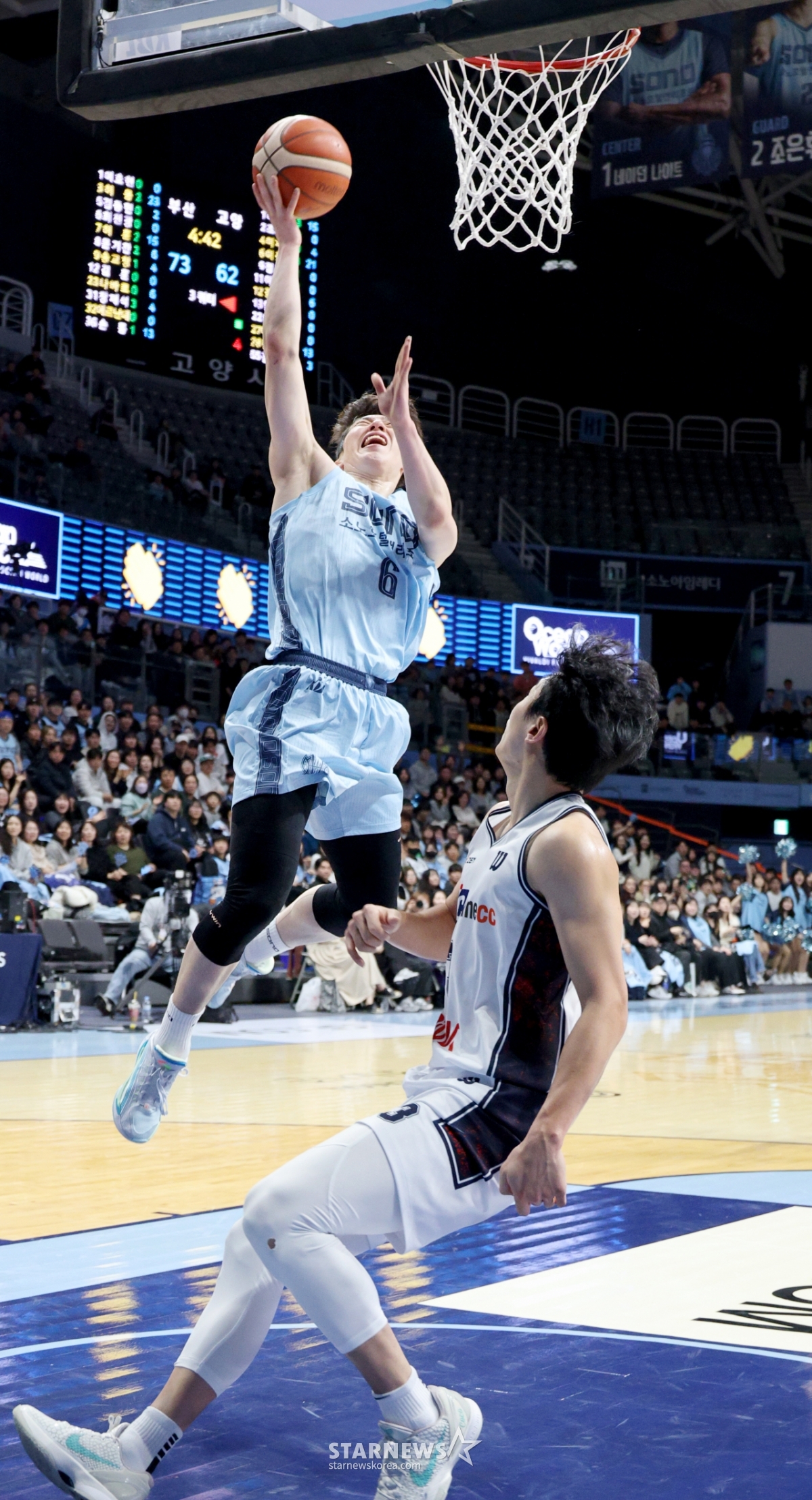 *此内容由AI翻译生成。4日,索诺李贞贤在高阳索诺竞技场举行的2025-2026LG电子职业篮球高阳索诺和釜山KCC队的比赛中,甩开许勋、许雄兄弟和纳瓦罗,试图突破。 2026.02.04.© STARNEWS. 未经许可禁止转载或再分发*此内容由AI翻译生成。