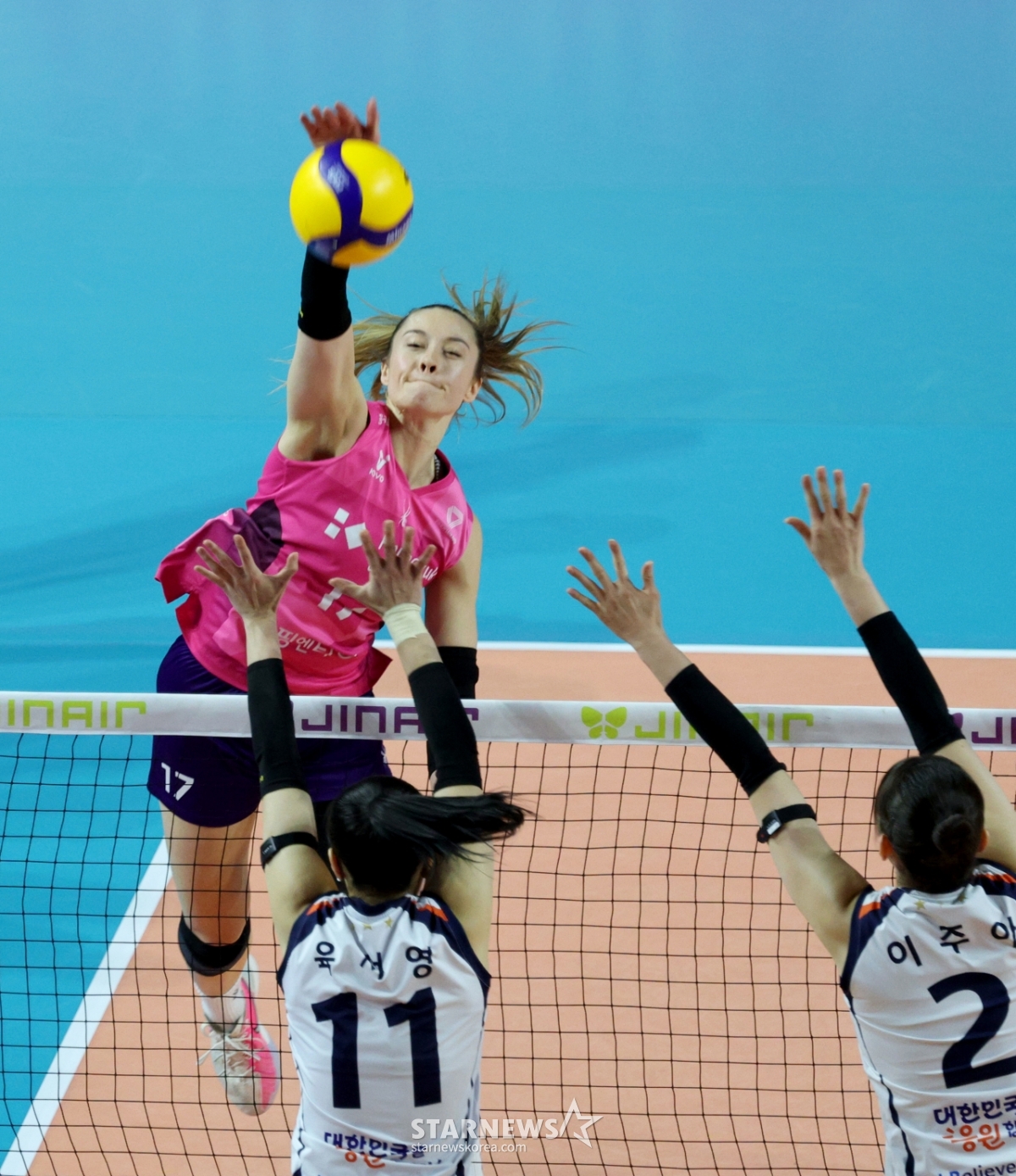 *此内容由AI翻译生成。兴国丽贝卡6日在三山世界体育馆举行的2025-2026真航空V联赛女子部兴国生命和企业银行比赛中,对企业双重拦网进行了猛烈的打击。 2026.02.06.© STARNEWS. 未经许可禁止转载或再分发*此内容由AI翻译生成。
