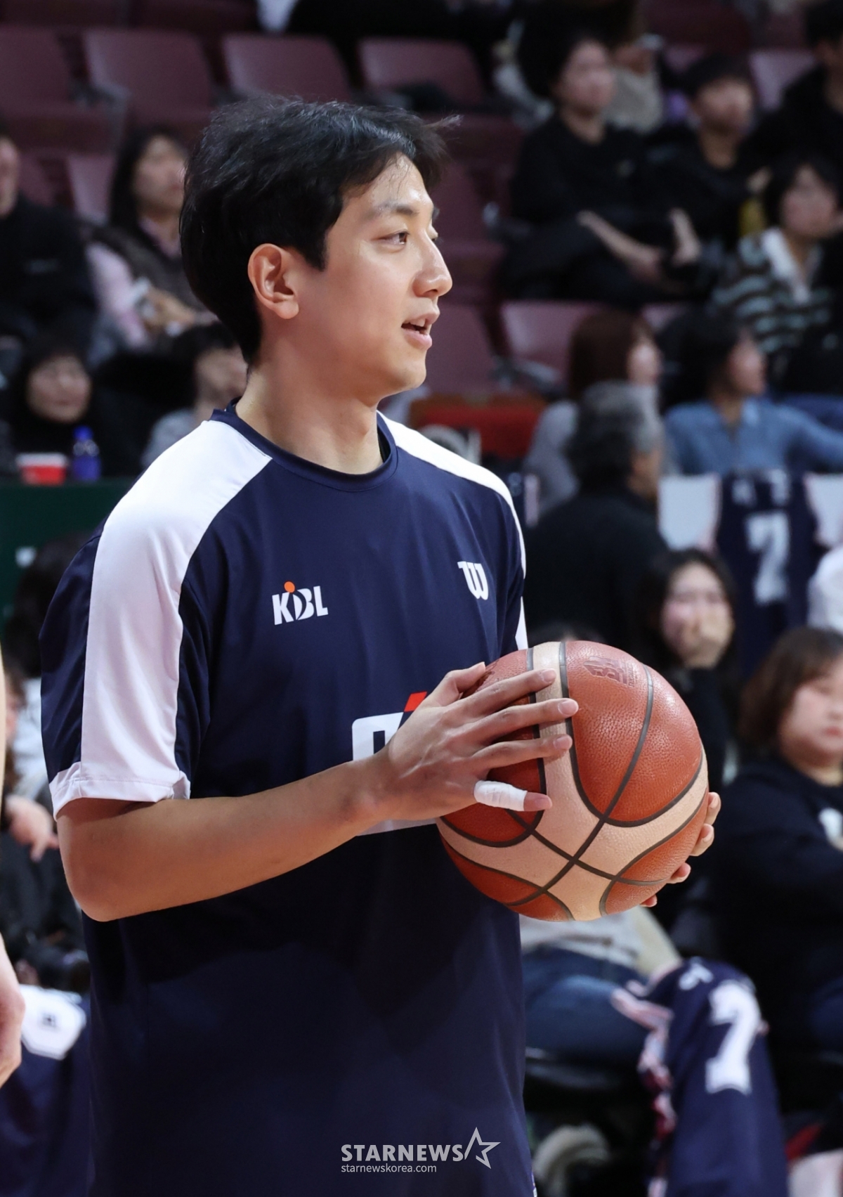 *此内容由AI翻译生成。7日,2025-2026LG电子职业篮球安养正官庄对釜山KCC的比赛在京畿道安养正官庄竞技场举行。KCC许勋正在观看许雄的训练场面。© STARNEWS. 未经许可禁止转载或再分发*此内容由AI翻译生成。