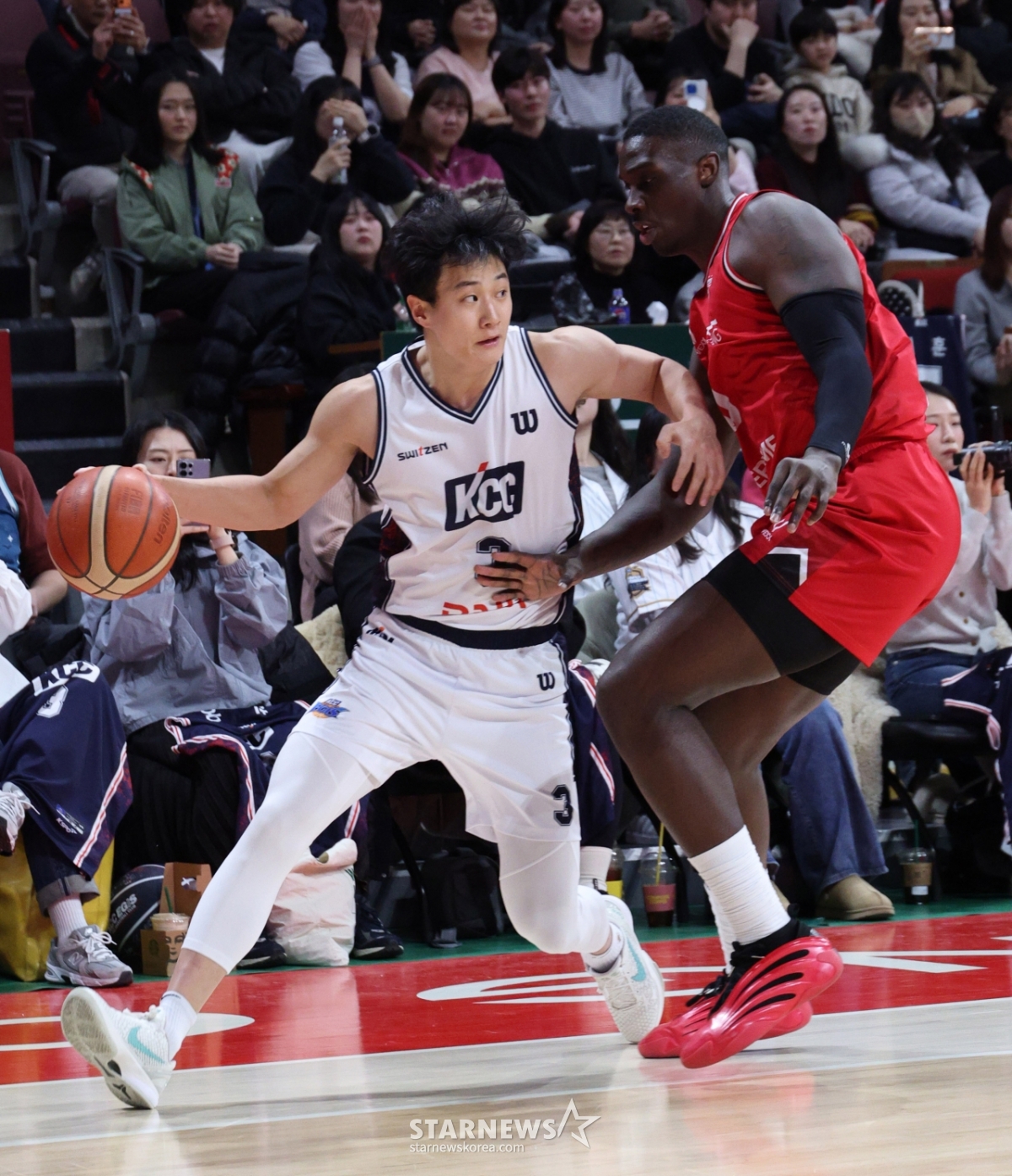 *此内容由AI翻译生成。7日,2025-2026LG电子职业篮球安养正官庄对釜山KCC的比赛在京畿道安养正官庄竞技场举行。KCC队的许雄正在超越正官庄奥布莱恩特进行侧击。© STARNEWS. 未经许可禁止转载或再分发*此内容由AI翻译生成。