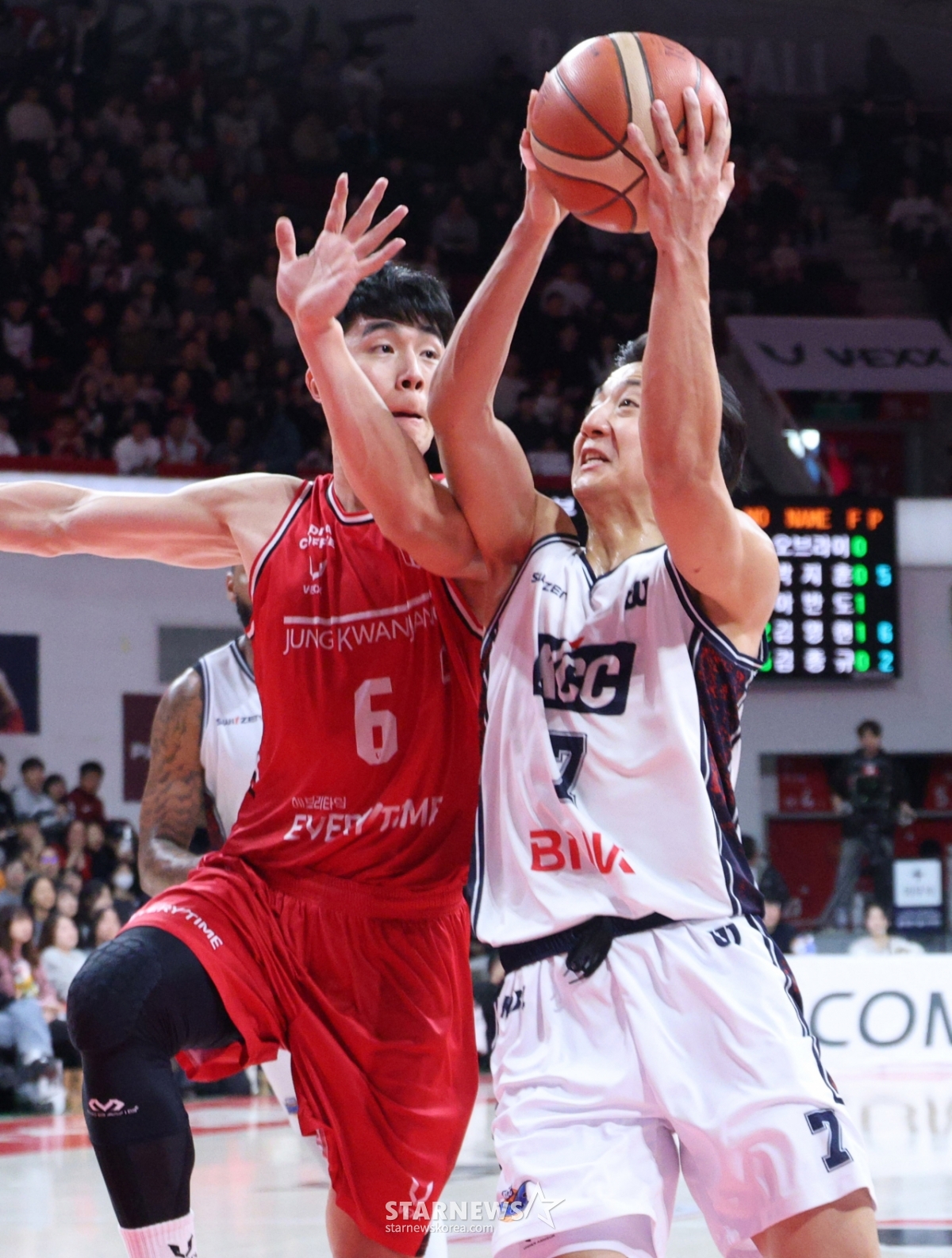 7日,2025-2026LG电子职业篮球安养正官庄对釜山KCC的比赛在京畿道安养正官庄竞技场举行。
