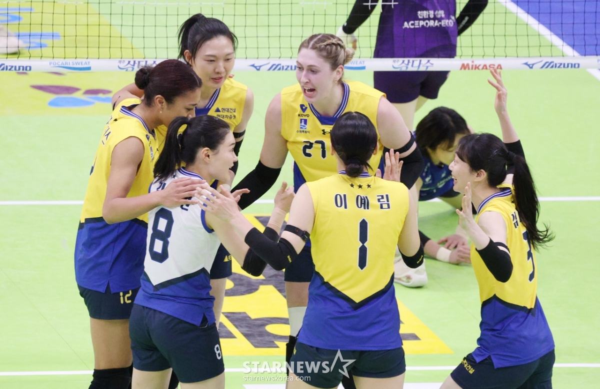 9日,2025-2026 V-联赛女子组现代建设对兴国生命的比赛在京畿道水原体育馆举行。