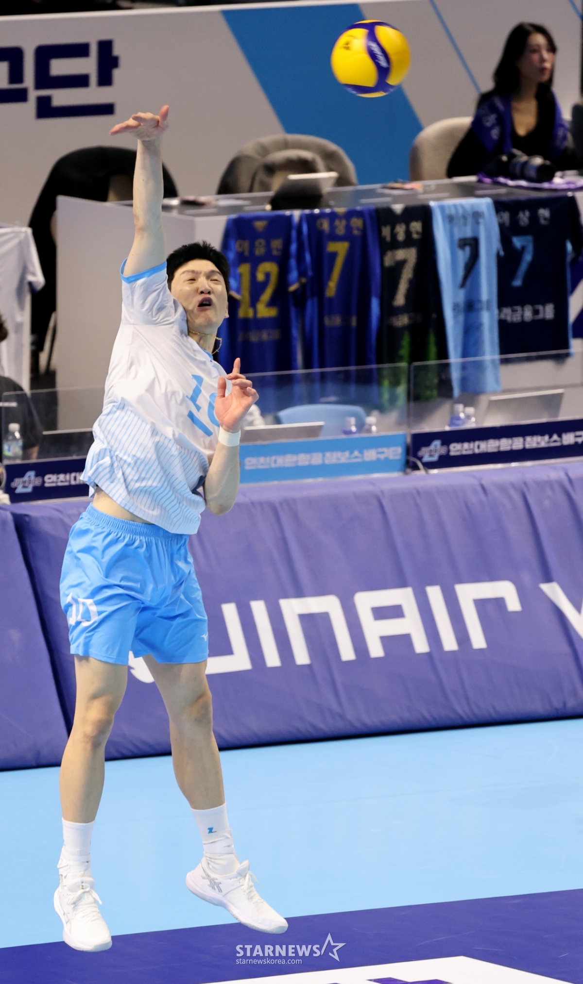 *此内容由AI翻译生成。10日,大韩航空郑智锡在桂阳体育馆举行的真航空2025-2026V联赛大韩航空和友利信用卡队的比赛中,正在尝试强有力的扣球发球。 2026.02.10.© STARNEWS. 未经许可禁止转载或再分发*此内容由AI翻译生成。
