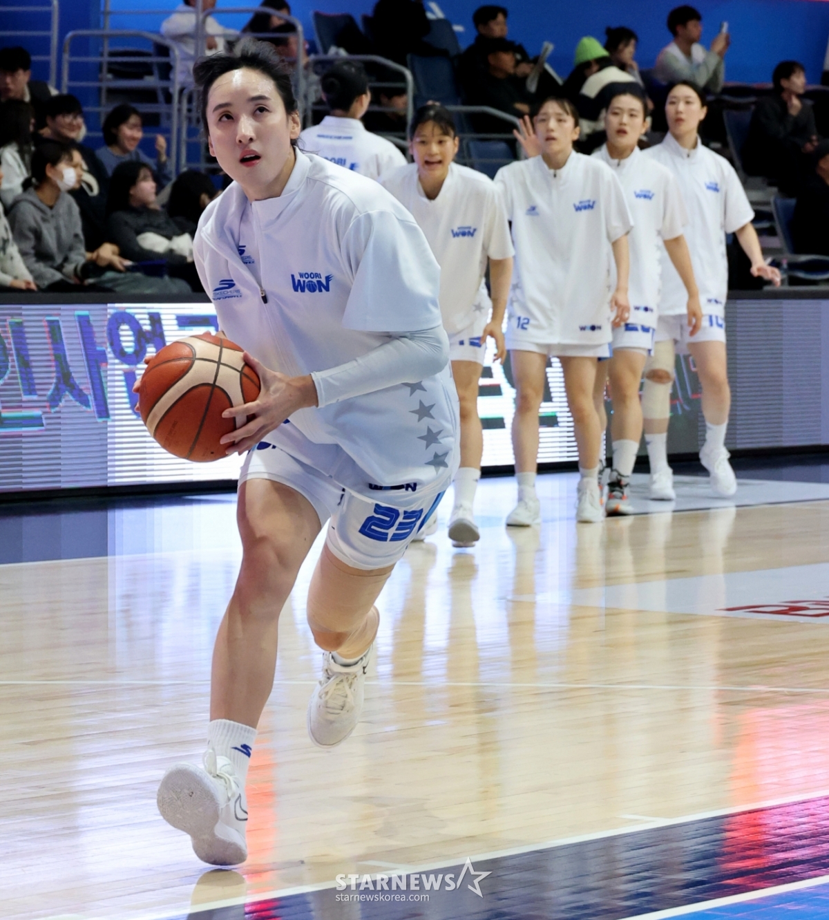 *此内容由AI翻译生成。友利银行金丹菲11日在仁川桃源体育馆举行的2025-2026WKBL新韩银行和友利银行比赛中,正在进行勾手投篮热身。 2026.02.11.© STARNEWS. 未经许可禁止转载或再分发*此内容由AI翻译生成。