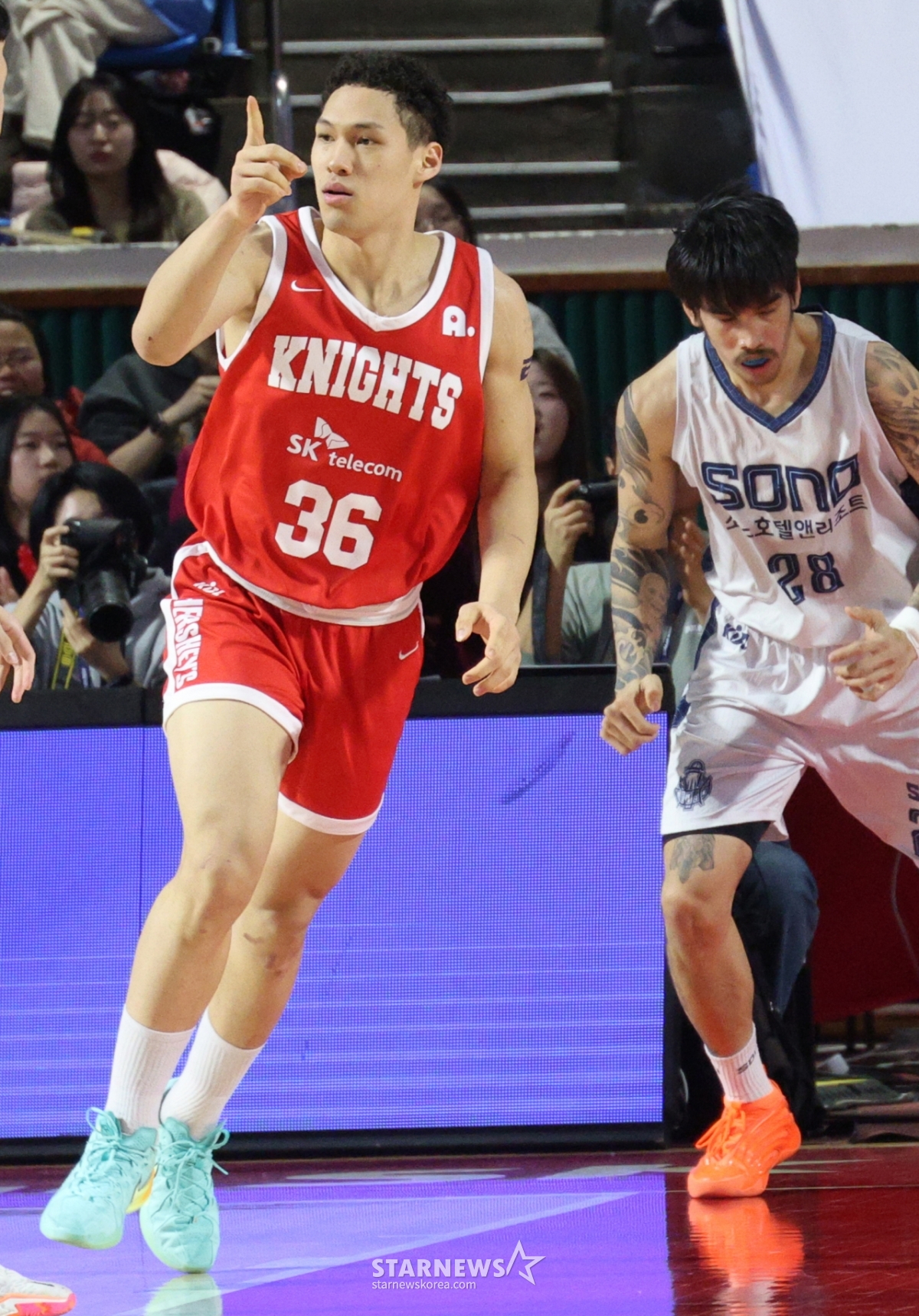 *此内容由AI翻译生成。11日,2025-2026 KBL职业篮球联赛首尔SK对高阳索诺的比赛在首尔蚕室学生体育馆举行。SK Eddie Daniel在快攻成功后正在庆祝。© STARNEWS. 未经许可禁止转载或再分发*此内容由AI翻译生成。