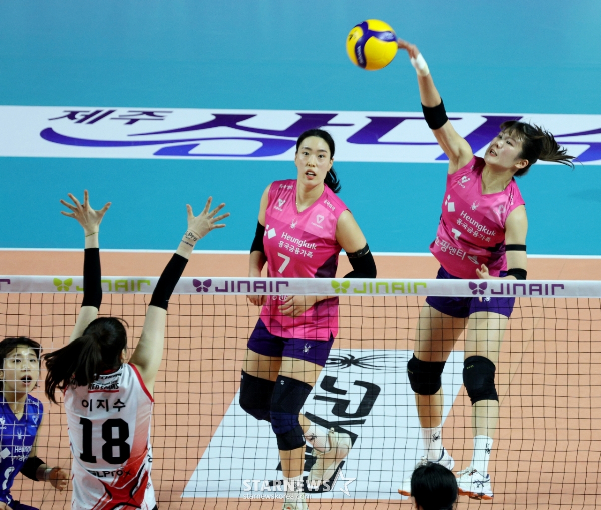 *此内容由AI翻译生成。兴国生命金多仁14日在三山世界体育馆举行的2025-2026真航空V联赛兴国生命和正官庄比赛中,成功通过该指数拦网。 2026.02.14.© STARNEWS. 未经许可禁止转载或再分发*此内容由AI翻译生成。